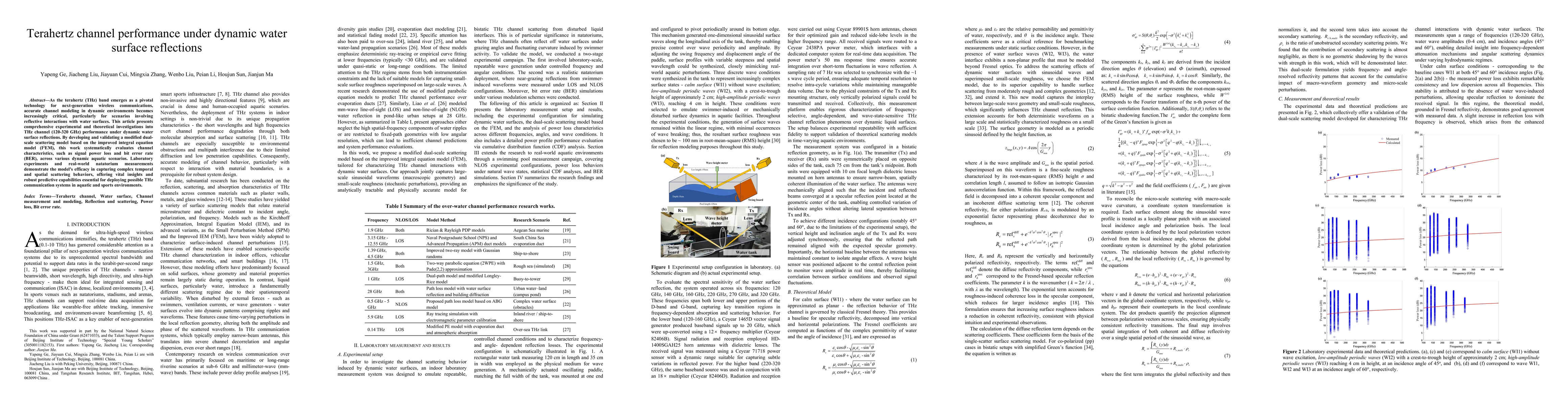 As the terahertz (THz) band emerges as a pivotal technology for next-generation wireless communications, accurate channel modeling in dynamic environments becomes increasingly critical, particularly for scenarios involving reflective interactions with water surfaces. This article presents comprehensive experimental and theoretical investigations into THz channel (120-320 GHz) performance under dynamic water surface reflections. By developing and validating a modified dual-scale scattering model based on the improved integral equation model (I2EM), this work systematically evaluates channel characteristics, such as signal power loss and bit error rate (BER), across various dynamic aquatic scenarios. Laboratory experiments and real-world natatorium measurements demonstrate the model's efficacy in capturing complex temporal and spatial scattering behaviors, offering vital insights and robust predictive capabilities essential for deploying possible THz communication systems in aquatic and sports environments.