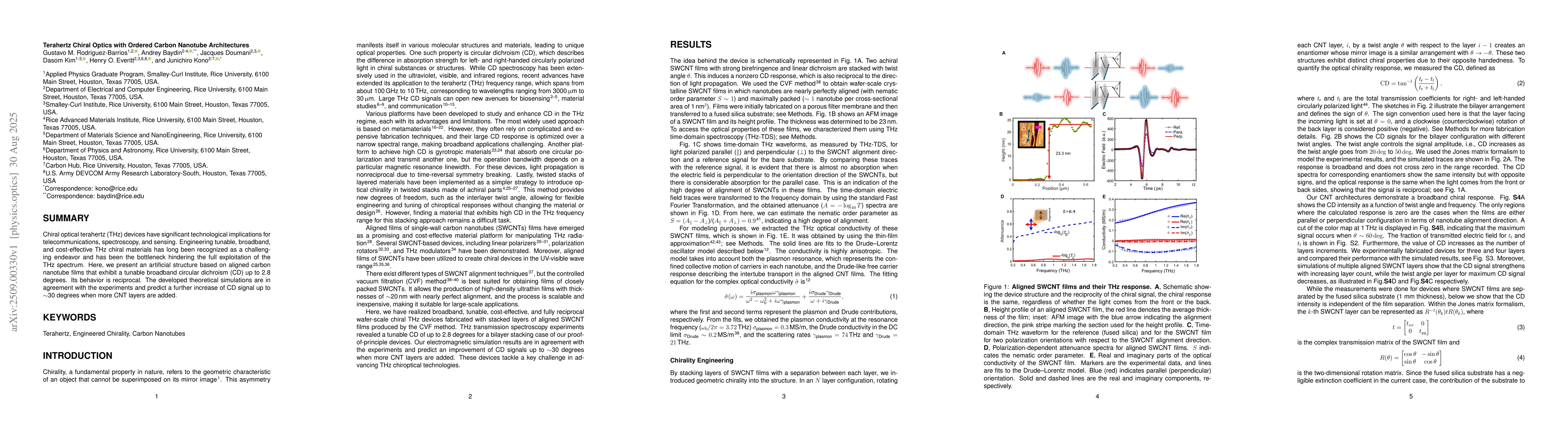 Chiral optical terahertz (THz) devices have significant technological implications for telecommunications, spectroscopy, and sensing. Engineering tunable, broadband, and cost-effective THz chiral materials has long been recognized as a challenging endeavor and has been the bottleneck hindering the full exploitation of the THz spectrum. Here, we present an artificial structure based on aligned carbon nanotube films that exhibit a tunable broadband circular dichroism (CD) up to 2.8 degrees. Its behavior is reciprocal. The developed theoretical simulations are in agreement with the experiments and predict a further increase of CD signal up to ~30 degrees when more CNT layers are added.