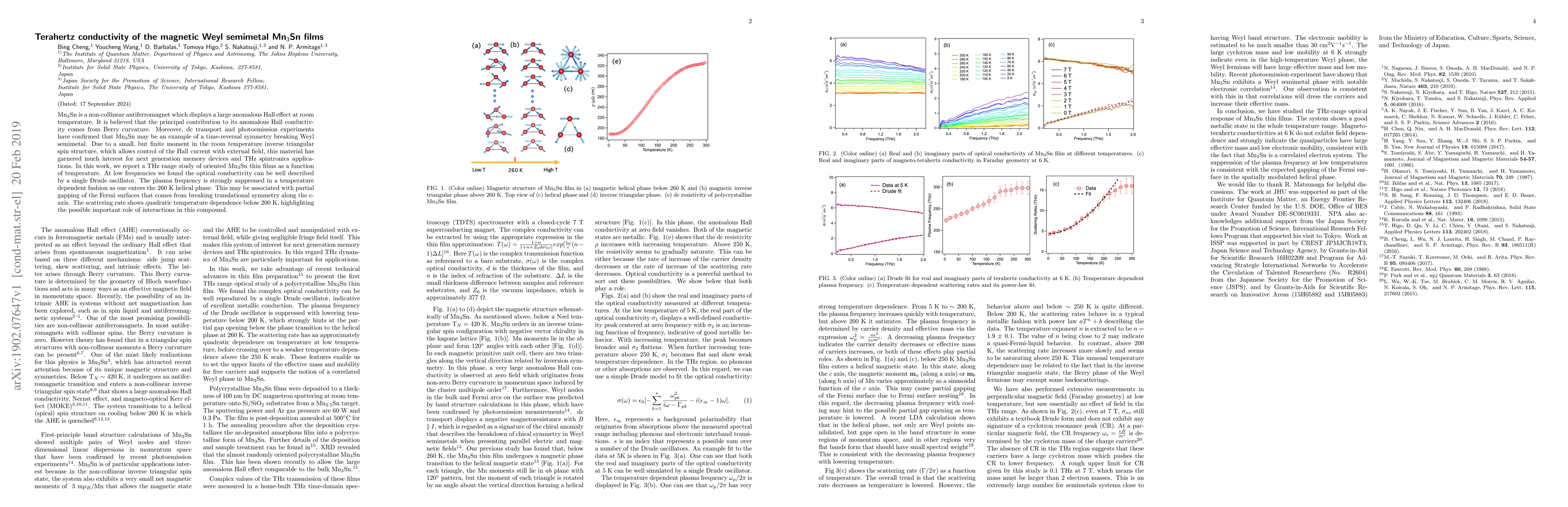 This study investigates the terahertz conductivity of Mn$_{3}$Sn thin films, revealing a temperature-dependent suppression of the plasma frequency linked to the material's helical phase and potential Fermi surface gapping. The findings suggest significant interaction effects influencing the compound's conductivity.