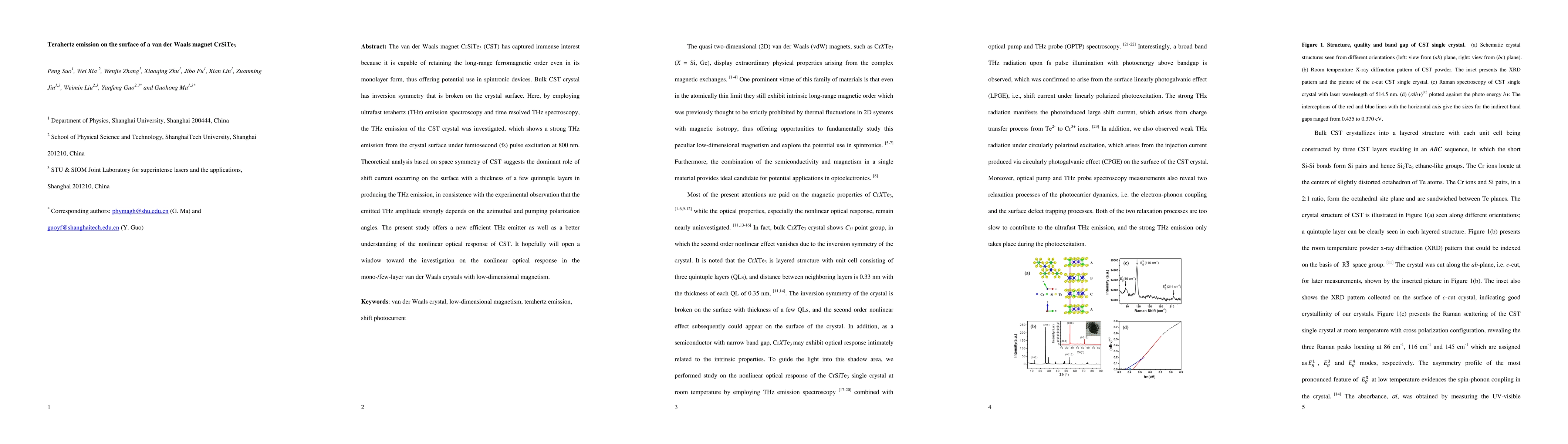 Researchers investigated terahertz emission in CrSiTe3, a van der Waals magnet, using ultrafast spectroscopy and found strong THz emission from the crystal surface under femtosecond pulse excitation.