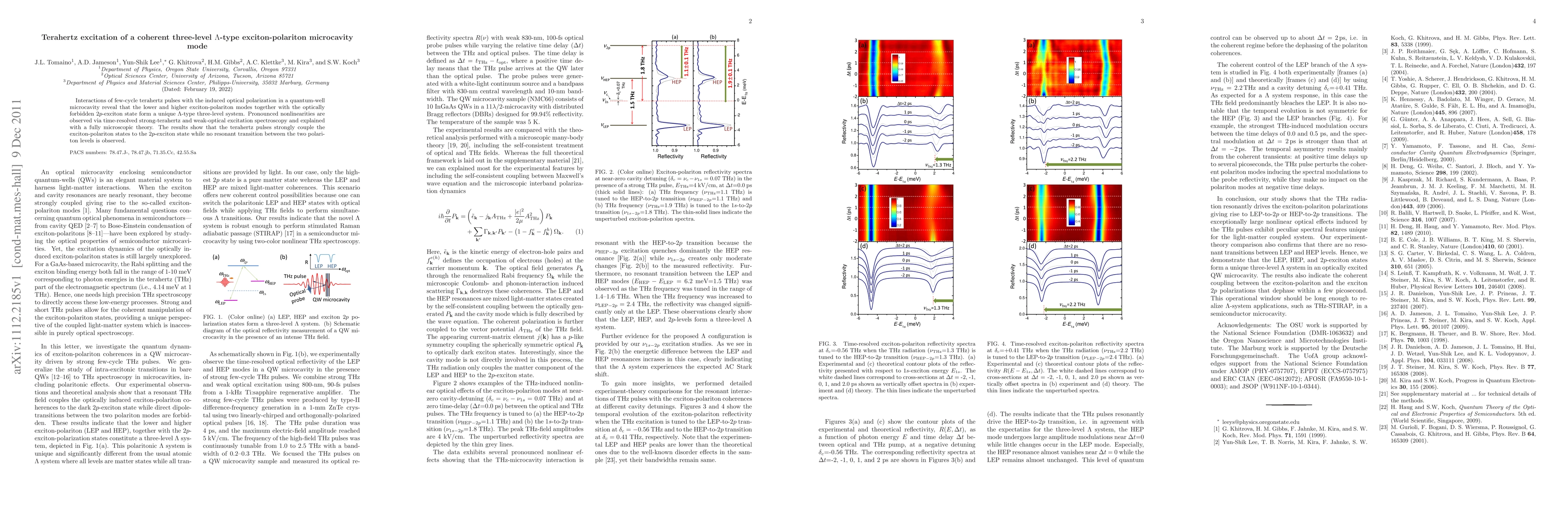This paper investigates the interaction of terahertz pulses with a quantum-well microcavity, revealing a unique Λ-type three-level exciton-polariton system. Nonlinearities observed through spectroscopy are explained by a fully microscopic theory, showing strong coupling between terahertz pulses and the 2p-exciton state without resonant transitions between polariton levels.