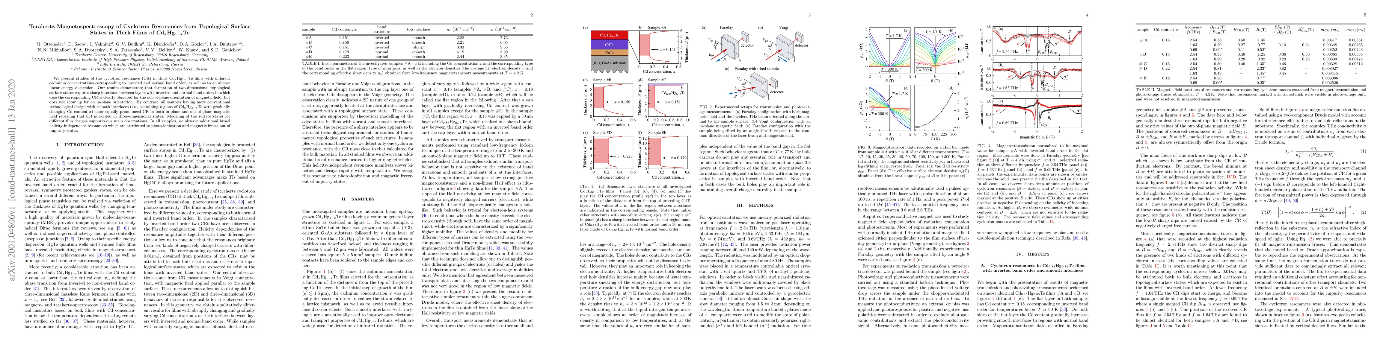 This study investigates cyclotron resonance in thick Cd$_x$Hg$_{1-x}$Te films, revealing that sharp interfaces between layers with inverted and normal band order facilitate the formation of two-dimensional topological surface states, which exhibit clear cyclotron resonance only for out-of-plane magnetic fields. In contrast, smoother interfaces lead to three-dimensional states with cyclotron resonance in both in-plane and out-of-plane orientations.