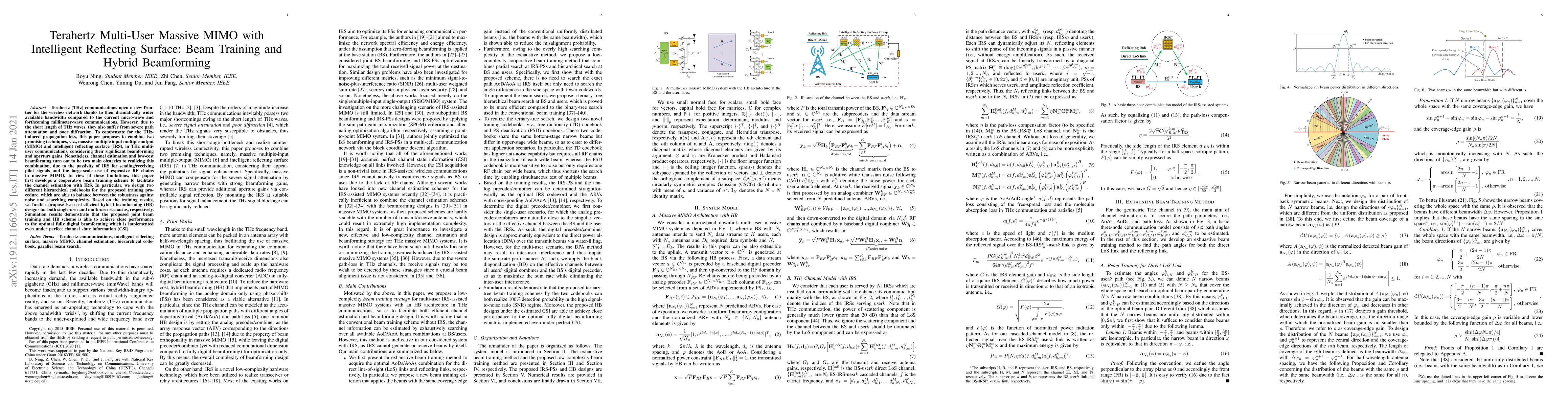 This paper proposes a combination of terahertz (THz) communications, massive MIMO, and intelligent reflecting surfaces (IRS) to mitigate THz wave propagation losses. It introduces a cooperative beam training scheme and cost-efficient hybrid beamforming designs to address channel estimation and low-cost beamforming challenges, achieving near-optimal performance compared to fully digital beamforming.