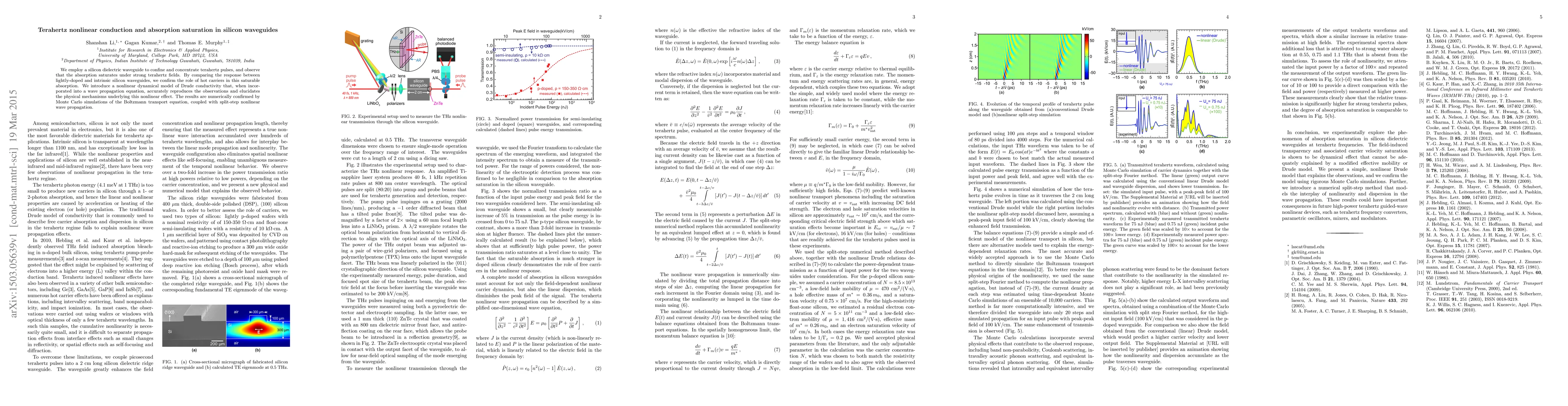 Researchers studied terahertz pulses in silicon waveguides, finding that absorption saturates under strong fields due to hot carriers, and developed a nonlinear model to explain the phenomenon.