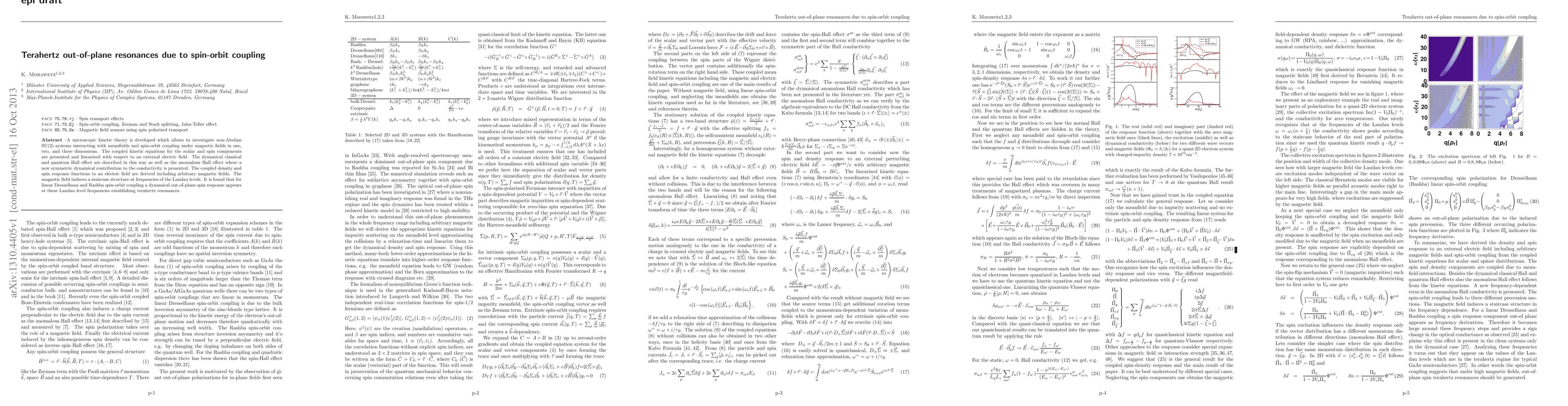 This paper develops a microscopic kinetic theory to explore non-Abelian SU(2) systems with spin-orbit coupling under magnetic fields, revealing terahertz out-of-plane spin resonances due to Dresselhaus and Rashba interactions at Landau level frequencies. The study also presents a new symmetric dynamical contribution to the conductivity in the anomalous Hall effect.