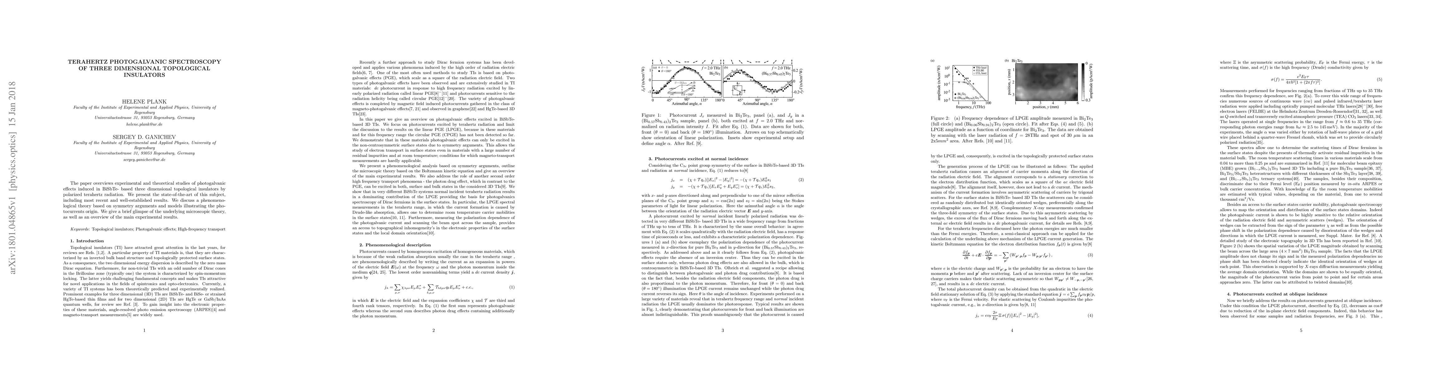This paper explores the photogalvanic effects in BiSbTe-based three-dimensional topological insulators under terahertz radiation, presenting both theoretical and experimental findings. It includes a phenomenological theory based on symmetry and models explaining the origin of photocurrents, alongside an overview of recent experimental results.
