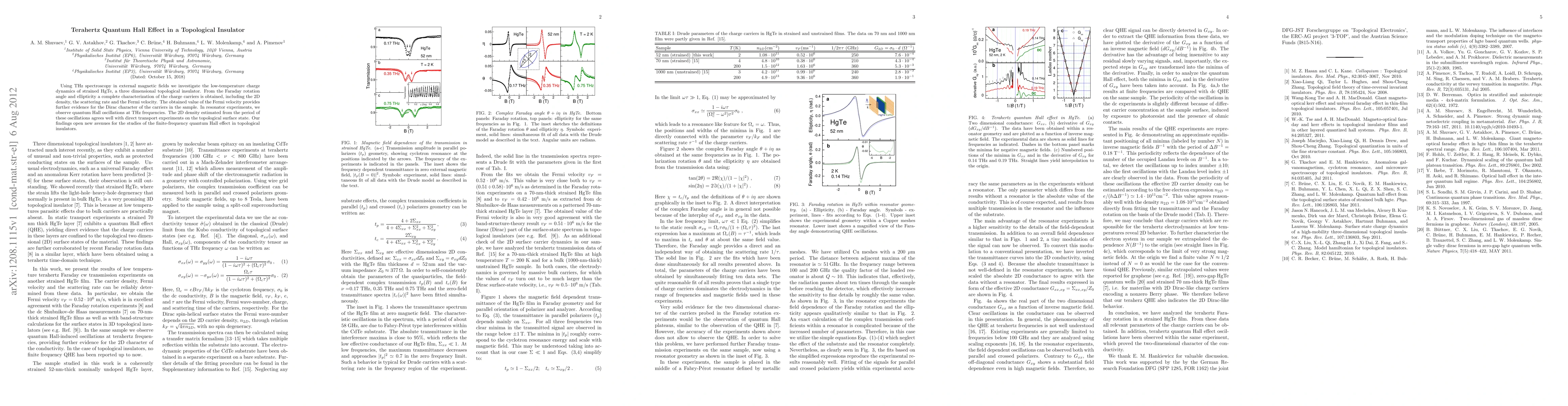 This study investigates the charge dynamics in strained HgTe, a topological insulator, using THz spectroscopy, revealing the Dirac character of carriers and observing quantum Hall oscillations at THz frequencies, which align with transport experiments and suggest new research directions for the finite-frequency quantum Hall effect in topological insulators.