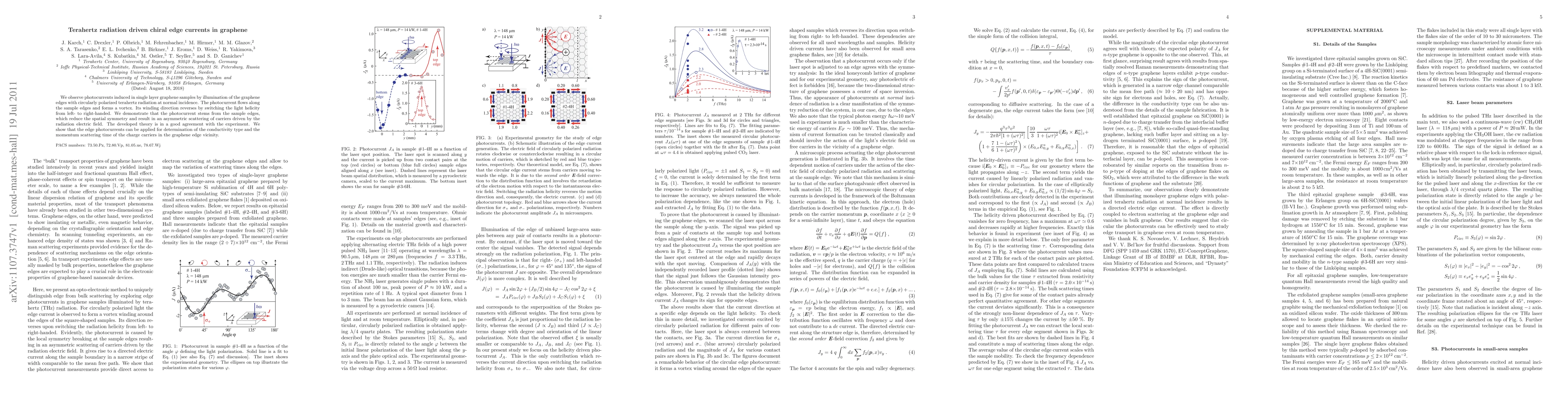 This paper reports the observation of chiral edge currents in graphene induced by circularly polarized terahertz radiation, which reverse direction with light helicity, demonstrating asymmetric carrier scattering due to reduced spatial symmetry at the edges. The findings can be used to determine the conductivity type and scattering time of charge carriers near graphene edges.