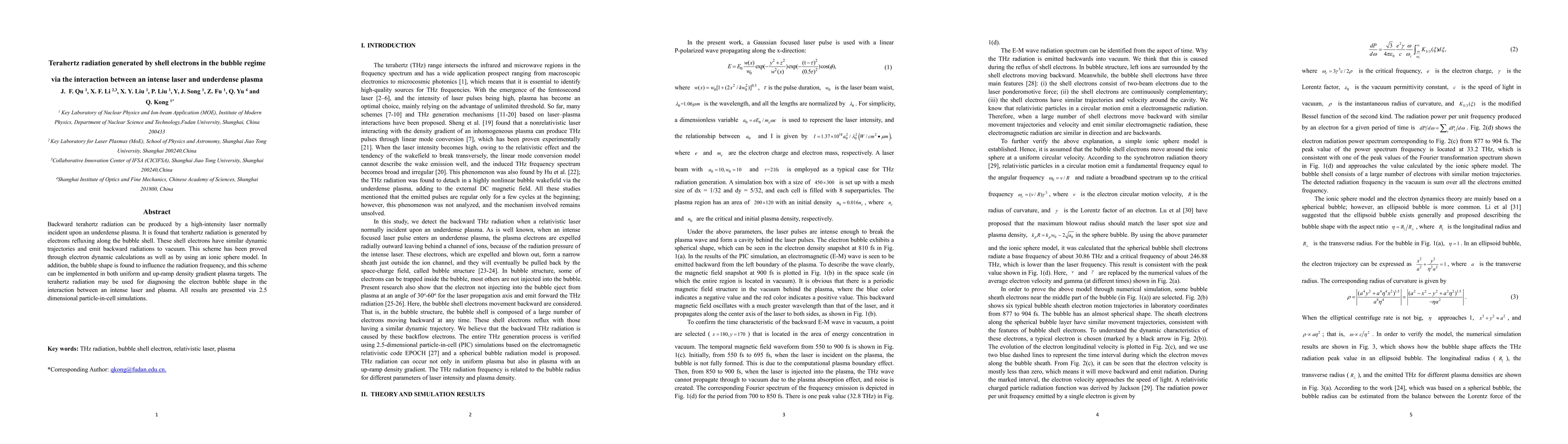 This paper demonstrates that high-intensity lasers interacting with underdense plasmas generate backward terahertz radiation via electrons moving along the bubble shell, with the bubble shape influencing the radiation frequency. The findings are validated through 2.5-dimensional particle-in-cell simulations and can be applied to both uniform and up-ramp density gradient plasma targets.