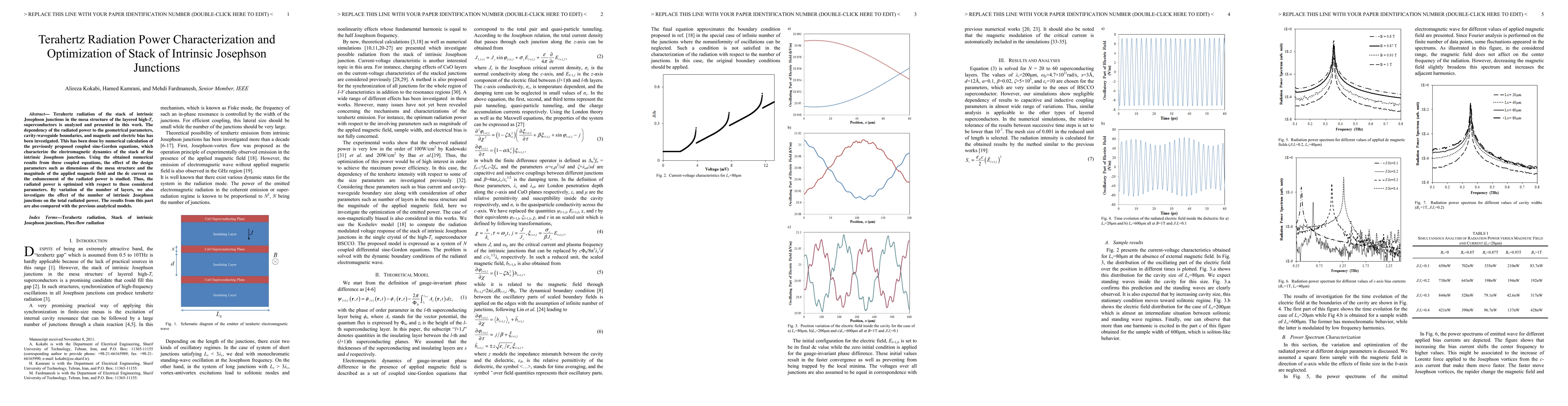 This paper analyzes terahertz radiation from intrinsic Josephson junctions in high-Tc superconductors, optimizing radiated power through numerical simulations of coupled sine-Gordon equations. The study investigates the impact of geometrical parameters, magnetic and electric biases, and the number of layers on the radiated power, comparing results with previous analytical models.