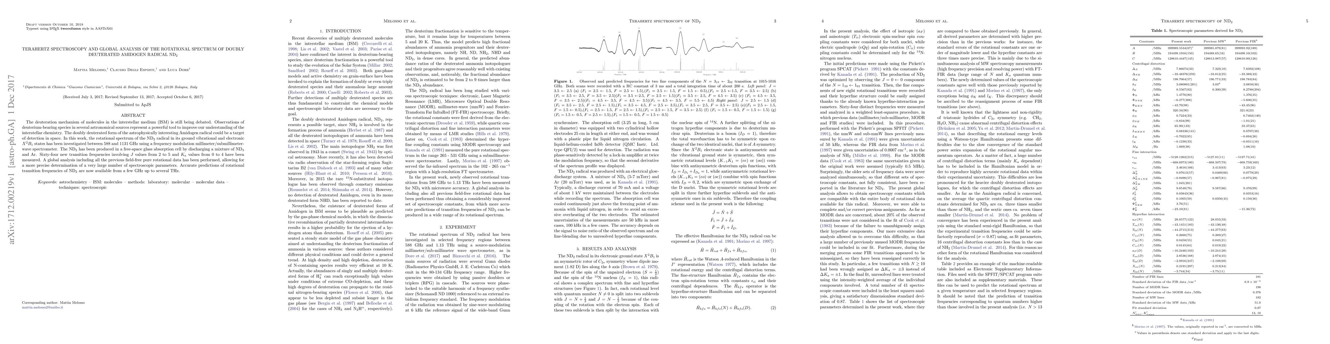 This paper investigates the rotational spectrum of the doubly deuterated Amidogen radical ND$_{2}$ using terahertz spectroscopy, measuring 64 new transition frequencies. A global analysis of all previous data refines the determination of numerous spectroscopic parameters, providing accurate predictions for ND$_{2}$ rotational transitions across a wide frequency range.