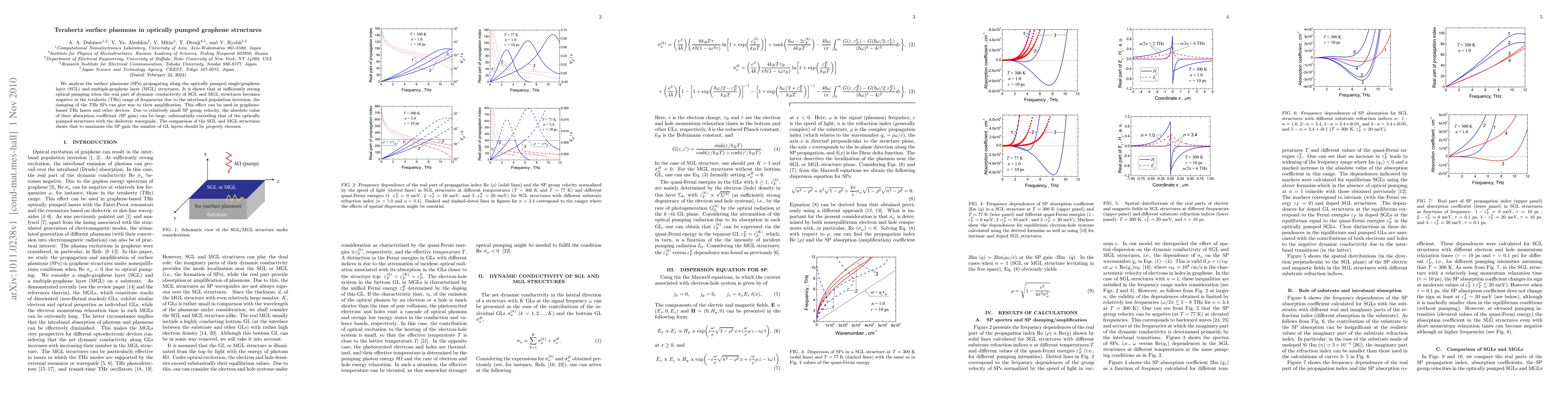 This paper investigates the amplification of terahertz surface plasmons in optically pumped single- and multi-layer graphene structures, showing that optimal conditions can lead to significant plasmon gain, potentially enabling graphene-based THz lasers and devices. The study concludes that the number of graphene layers must be carefully selected to maximize this plasmon gain.