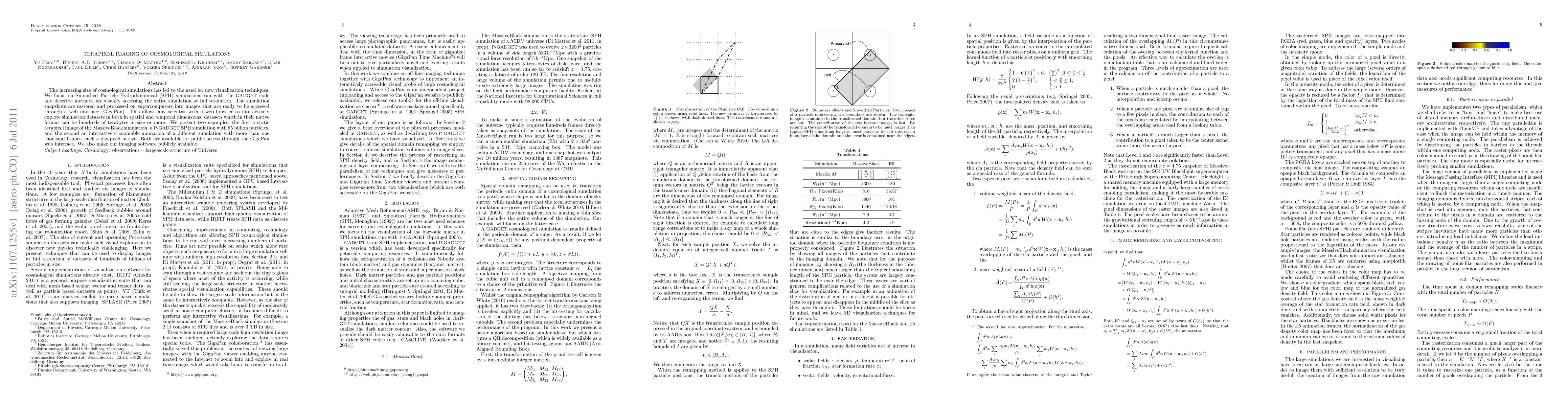 This paper introduces terapixel imaging techniques for visualizing large cosmological simulations, specifically Smoothed Particle Hydrodynamical (SPH) simulations using the GADGET code. The authors present a method to convert simulation snapshots into gigapixel images accessible via a web interface, allowing interactive exploration of datasets that are otherwise too large to handle directly.