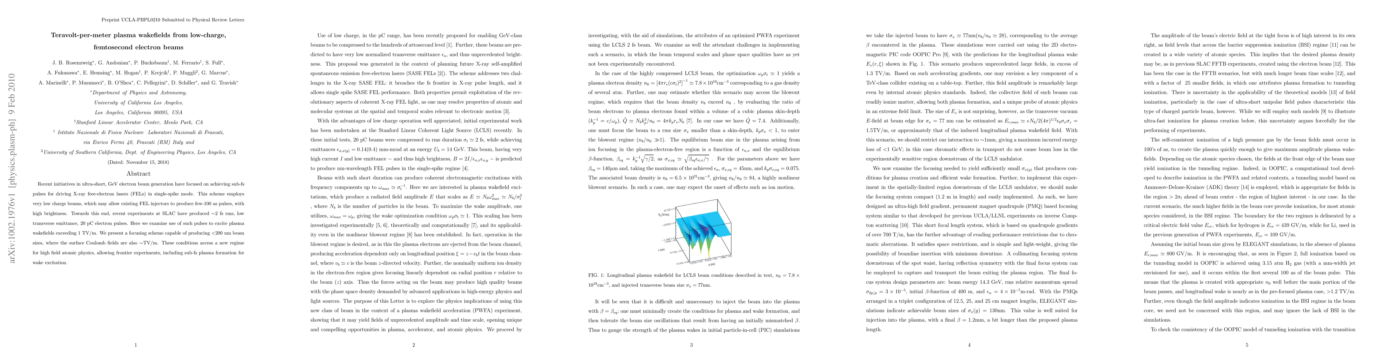 This paper investigates the generation of ultra-high plasma wakefields using low-charge, femtosecond electron beams, achieving teravolt-per-meter fields. Experiments at SLAC demonstrate the potential for producing few-100 attosecond pulses with high brightness, enabling new regimes for high field atomic physics and sub-fs plasma formation.