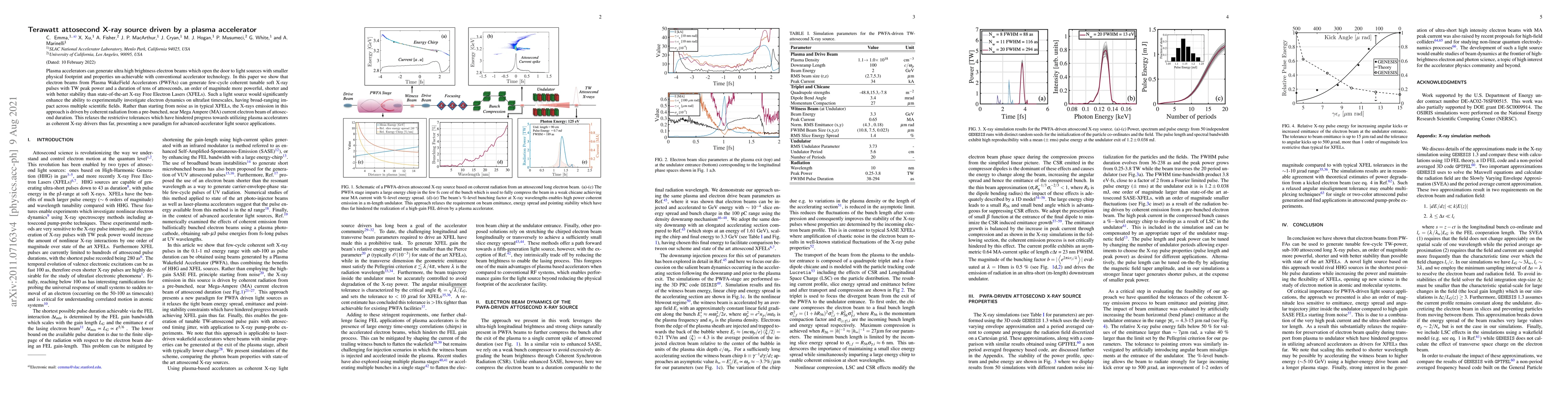 The research utilizes plasma wakefield accelerators (PWFAs) to generate ultra-high brightness electron beams, which are then used to produce few-cycle coherent tunable soft X-ray pulses with TW peak power and durations in the tens of attoseconds.