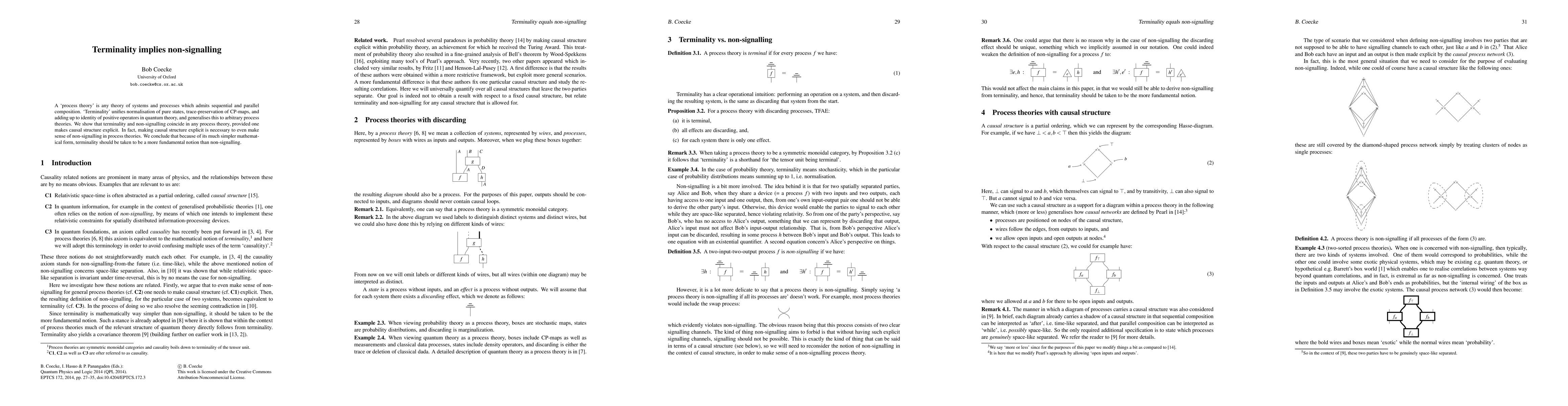 This paper demonstrates that terminality, a concept unifying key quantum theory principles, implies non-signalling in any process theory when causal structure is explicitly defined. It argues that terminality is a more fundamental notion than non-signalling due to its simpler mathematical form.