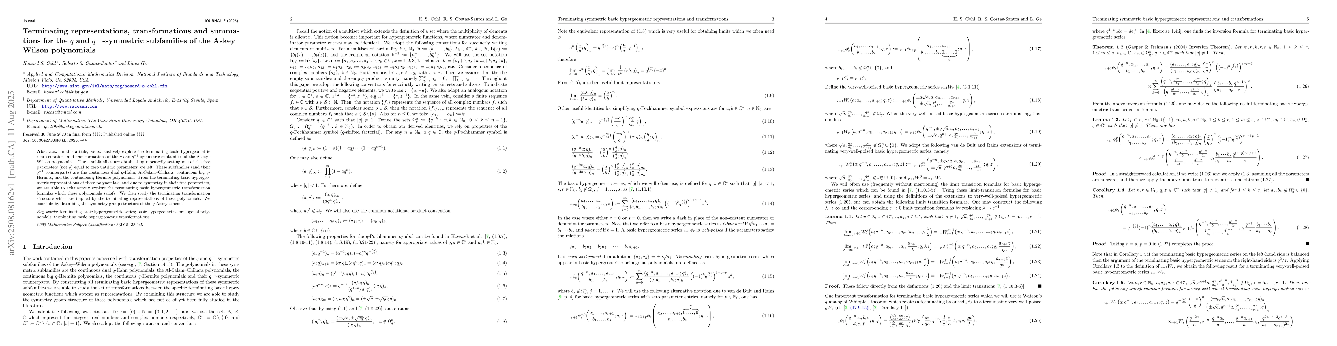 Xiang-Sheng Wang, Howard S. Cohl, Roberto S. Costas-Santos