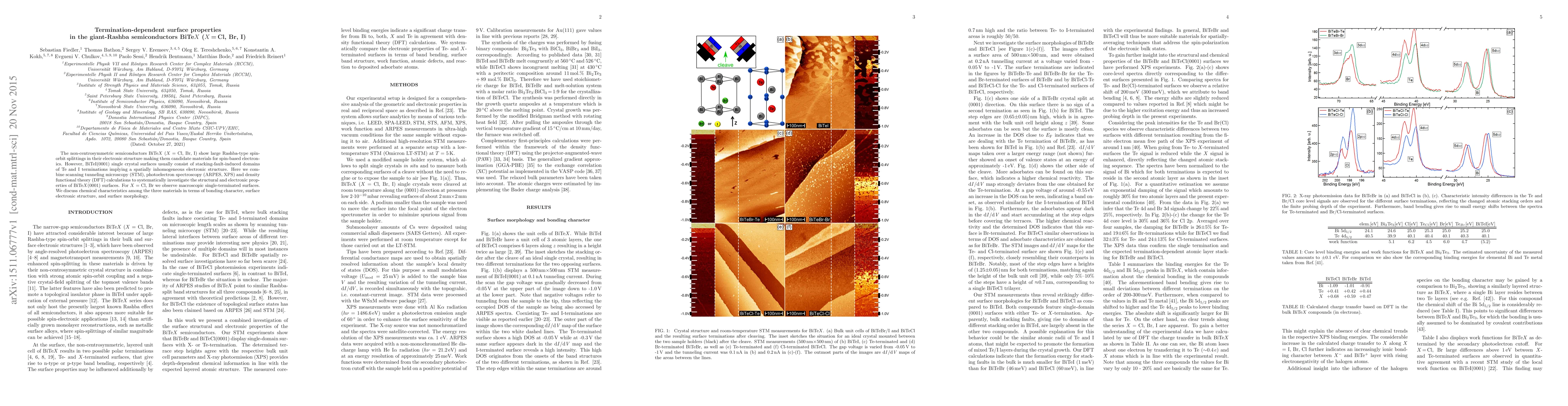 This study investigates the surface properties of non-centrosymmetric semiconductors BiTeX (X = Cl, Br, I) using STM, ARPES, XPS, and DFT, revealing that BiTeI(0001) surfaces have stacking-fault-induced domains, while BiTeCl(0001) and BiTeBr(0001) exhibit macroscopic single-terminated surfaces, highlighting differences in bonding and electronic structure.