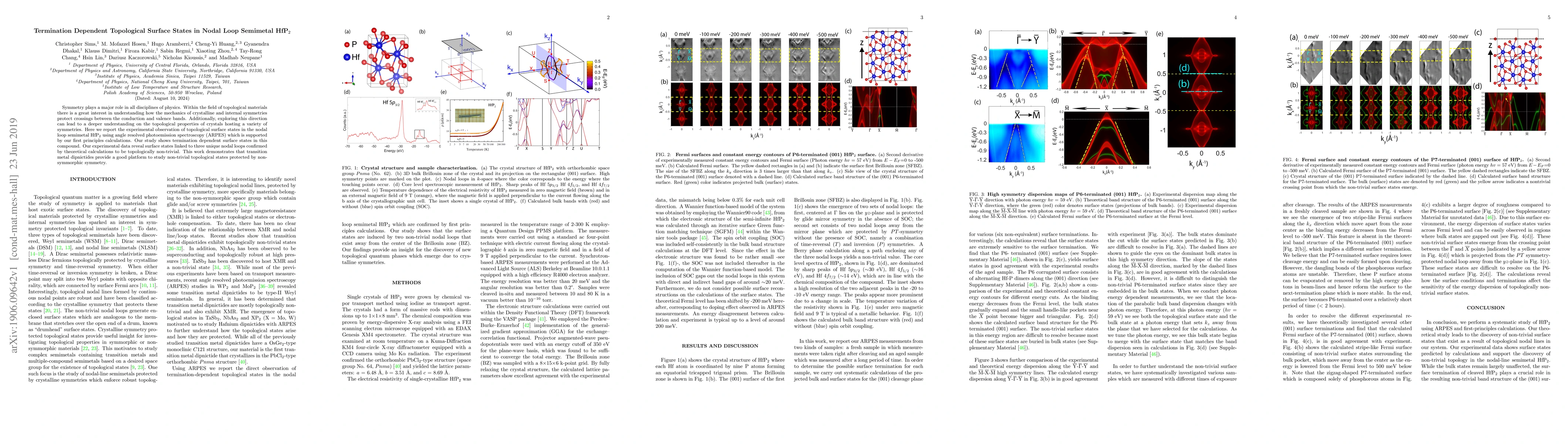 This research reports the first experimental observation of topological surface states in the nodal loop semimetal HfP2 using ARPES, revealing termination dependent surface states linked to three unique nodal loops, which are confirmed as topologically non-trivial by first principles calculations. The study highlights transition metal dipnictides as a promising platform for studying non-trivial topological states protected by nonsymmorphic symmetry.