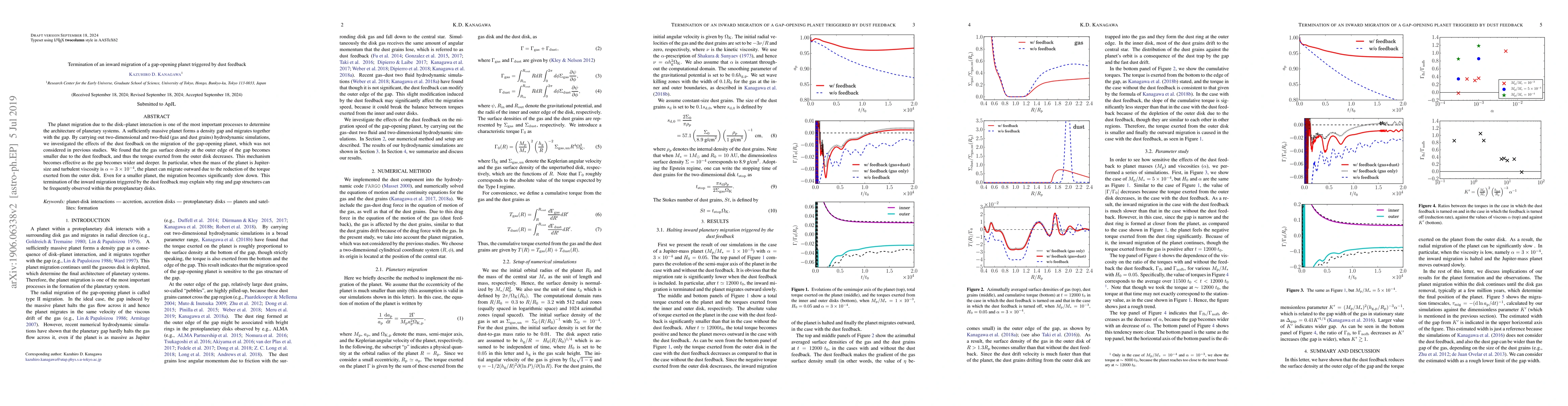 The planet migration due to the disk--planet interaction is one of the most important processes to determine the architecture of planetary systems. A sufficiently massive planet forms a density gap and migrates together with the gap. By carrying out two-dimensional and two-fluid (gas and dust grains) hydrodynamic simulations, we investigated the effects of the dust feedback on the migration of the gap-opening planet, which was not considered in previous studies. We found that the gas surface density at the outer edge of the gap becomes smaller due to the dust feedback, and thus the torque exerted from the outer disk decreases. This mechanism becomes effective as the gap becomes wider and deeper. In particular, when the mass of the planet is Jupiter-size and turbulent viscosity is $\alpha = 3\times 10^{-4}$, the planet can migrate outward due to the reduction of the torque exerted from the outer disk. Even for a smaller planet, the migration becomes significantly slow down. This termination of the inward migration triggered by the dust feedback may explain why ring and gap structures can be frequently observed within the protoplanetary disks.