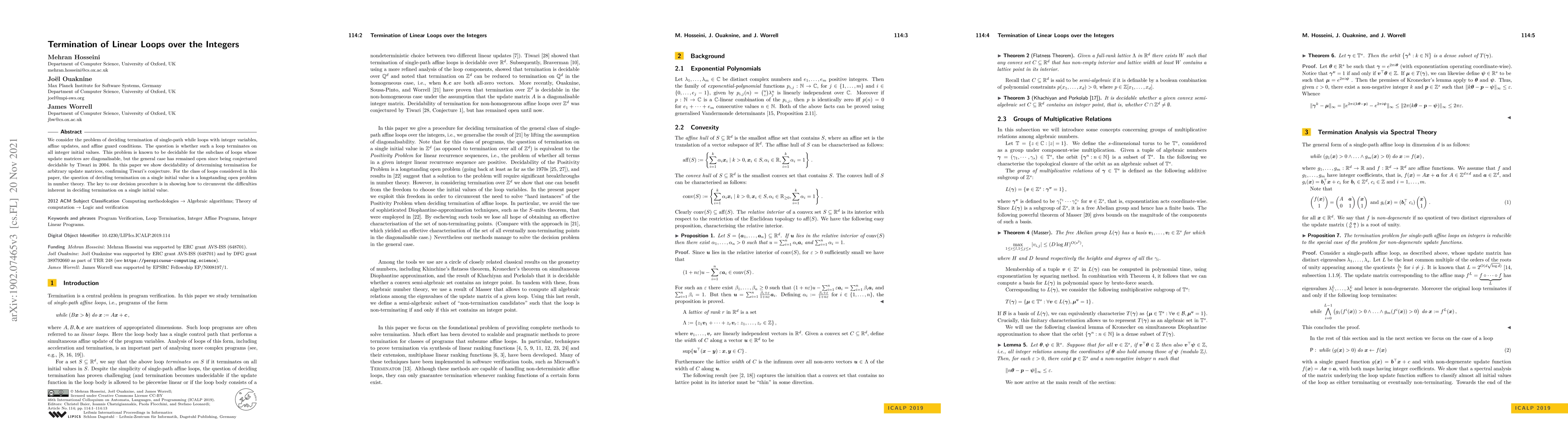 This paper confirms the decidability of determining termination for single-path while loops with integer variables, affine updates, and guard conditions, resolving a long-standing conjecture by Tiwari. The key contribution lies in devising a method to tackle the inherent complexities involved in deciding loop termination for arbitrary initial values.