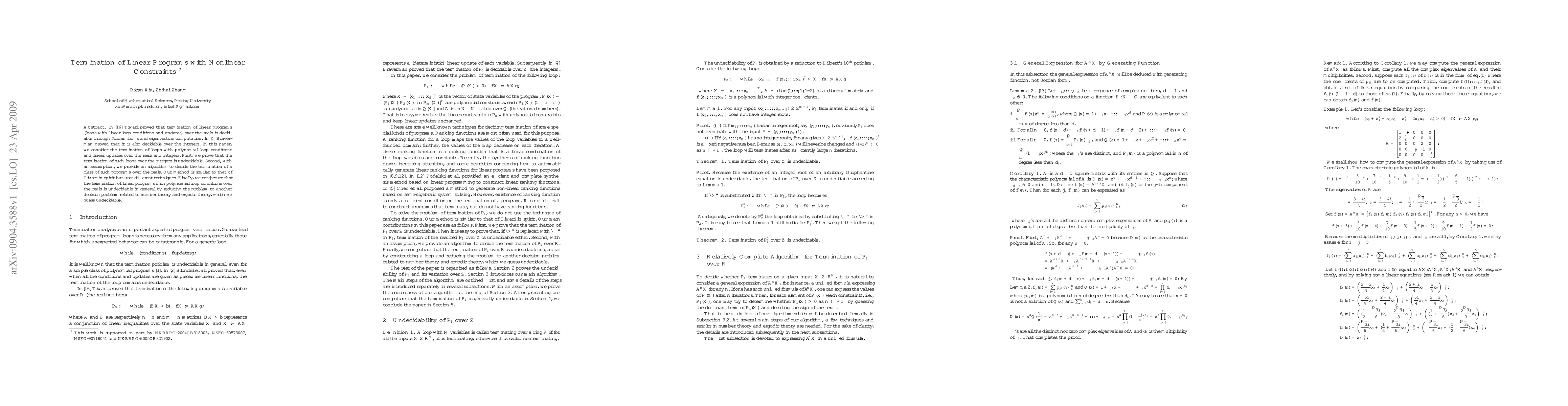 This paper investigates the decidability of termination for linear programs with nonlinear constraints. It proves that termination over integers is undecidable but provides a complete algorithm under an assumption for the reals, using techniques different from Tiwari's. The authors conjecture that general termination with polynomial loop conditions over the reals is likely undecidable.