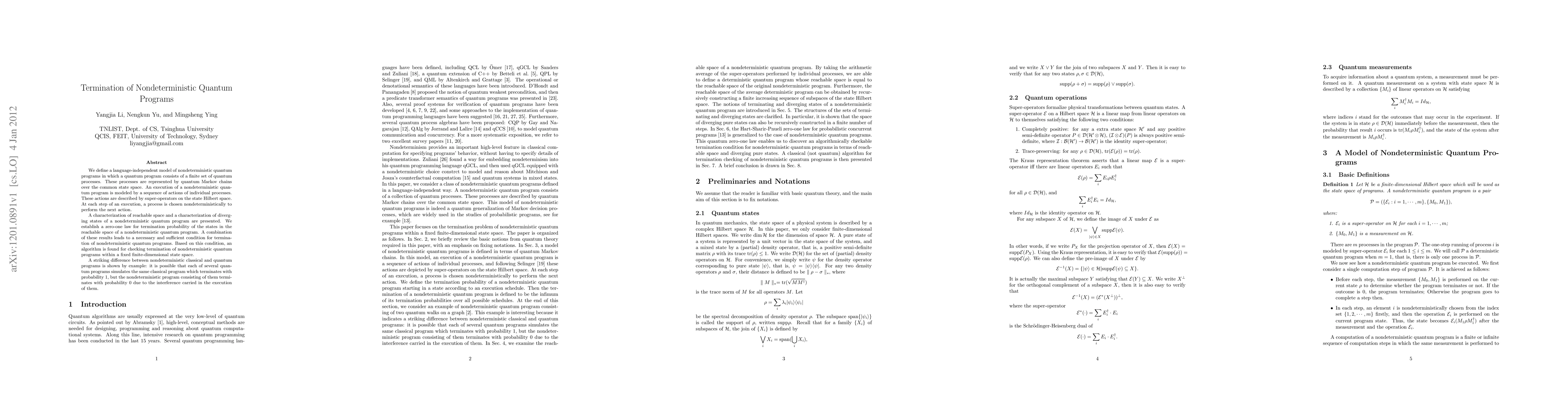 This paper presents a model for nondeterministic quantum programs using quantum Markov chains, establishing a zero-one law for their termination probability and a necessary and sufficient condition for termination. It highlights a key difference between classical and quantum nondeterministic programs, showing that quantum interference can lead to non-termination despite individual programs terminating classically.
