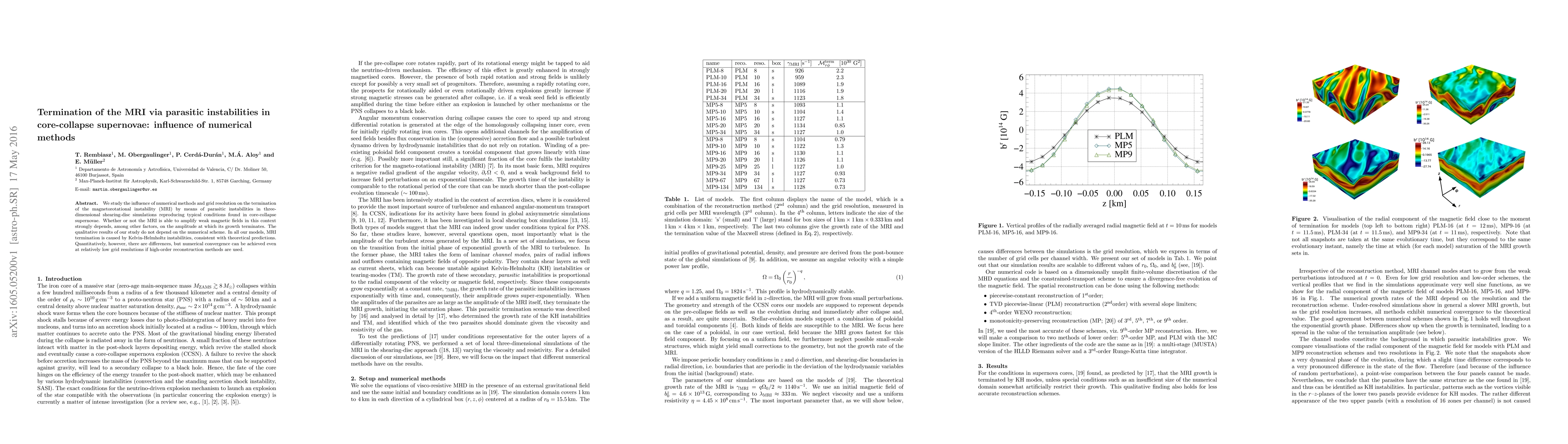 This study investigates how numerical methods and grid resolution affect the termination of MRI in core-collapse supernovae via parasitic instabilities. MRI termination is consistently caused by Kelvin-Helmholtz instabilities, but quantitative differences arise; high-order reconstruction methods enable numerical convergence at relatively low resolutions.