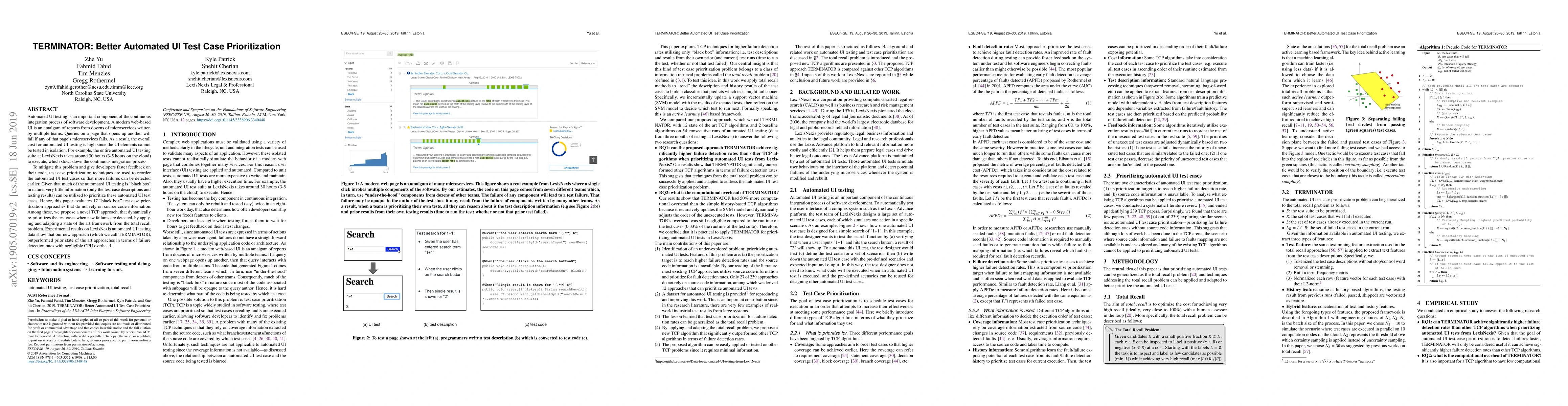 This research paper proposes a new approach called TERMINATOR that improves automated UI test case prioritization by dynamically re-prioritizing tests when new failures are detected, outperforming existing state-of-the-art approaches with high failure detection rates and negligible CPU overhead.