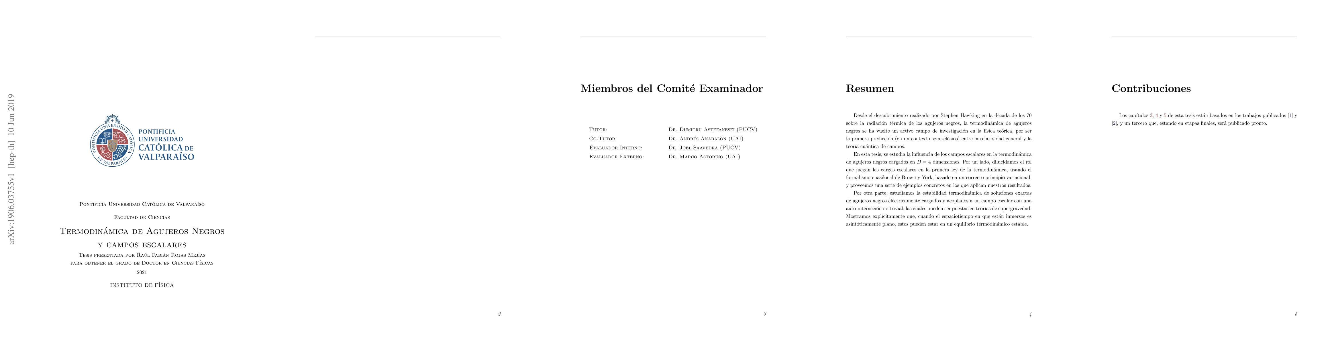 This thesis investigates how scalar fields affect black hole thermodynamics in 4 dimensions, showing that they can create stable hairy black holes in supergravity theories.