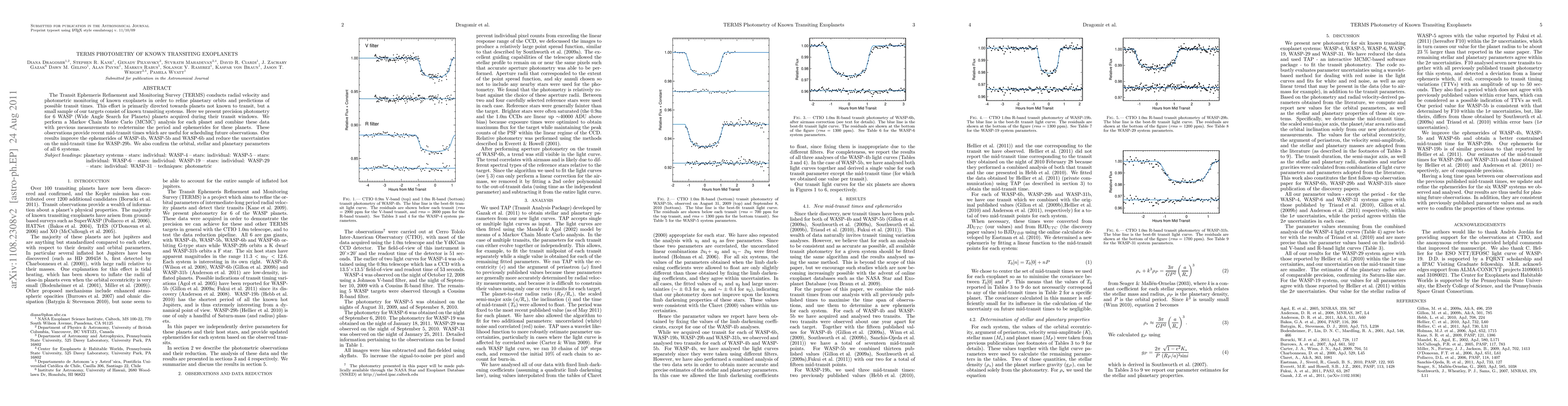The TERMS project refines the orbits of known transiting exoplanets through precise photometry and MCMC analysis, improving ephemerides for WASP-4b, WASP-5b, WASP-6b, and reducing uncertainties for WASP-29b, while confirming parameters for all six systems.
