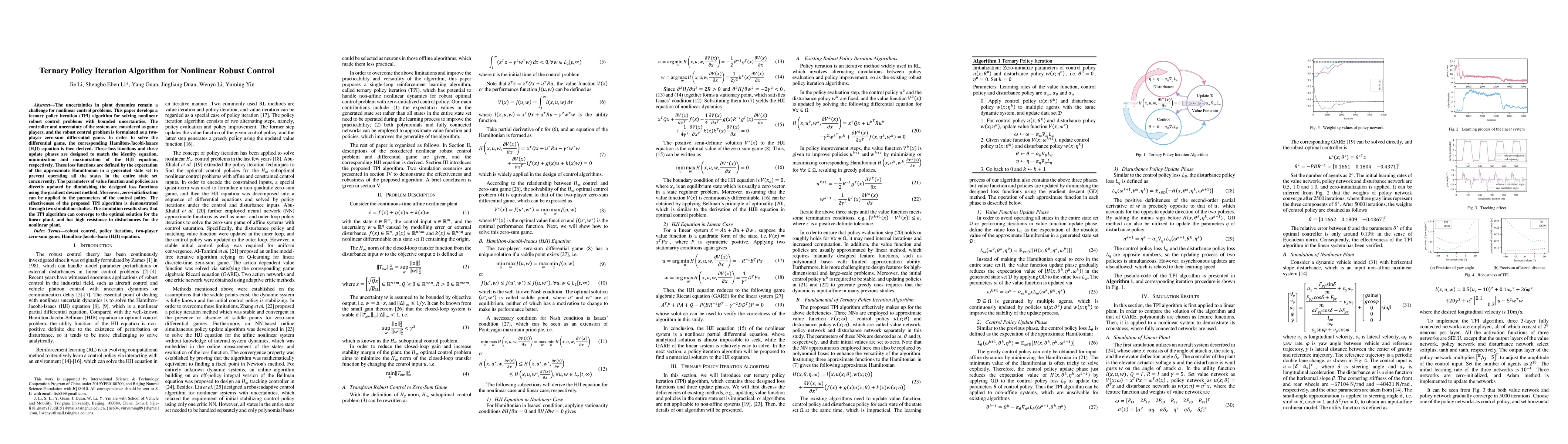 This paper introduces a ternary policy iteration (TPI) algorithm for nonlinear robust control, addressing uncertainties in plant dynamics through a two-player zero-sum differential game framework. The algorithm updates value functions and policies via gradient descent to minimize the Hamilton-Jacobi-Isaacs equation, demonstrating effectiveness in simulations for both linear and nonlinear plants.