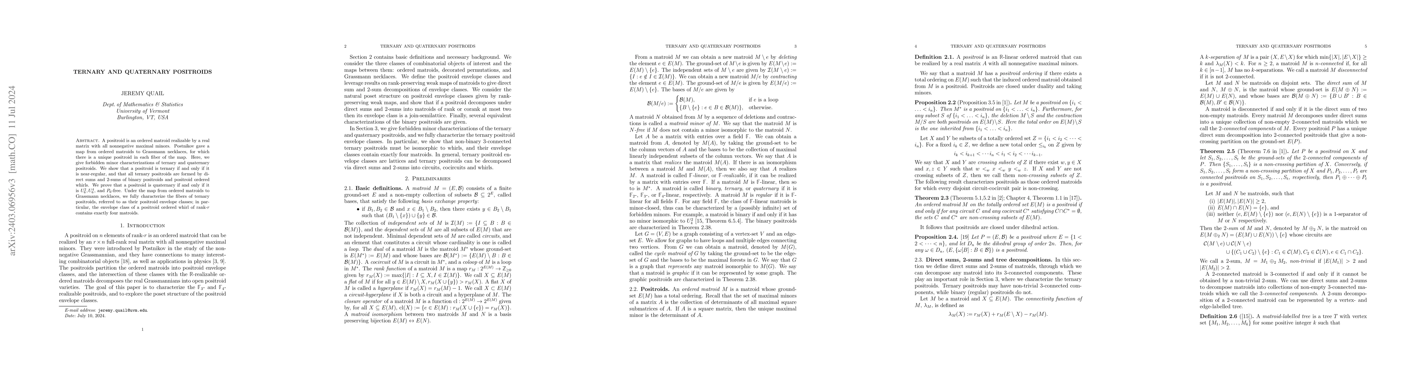This paper characterizes ternary positroids, showing they are equivalent to near-regular positroids formed by direct sums and 2-sums of binary positroids and positroid whirls. It fully describes the envelope classes of these positroids, revealing that each rank-$r$ positroid whirl contains exactly four matroids.