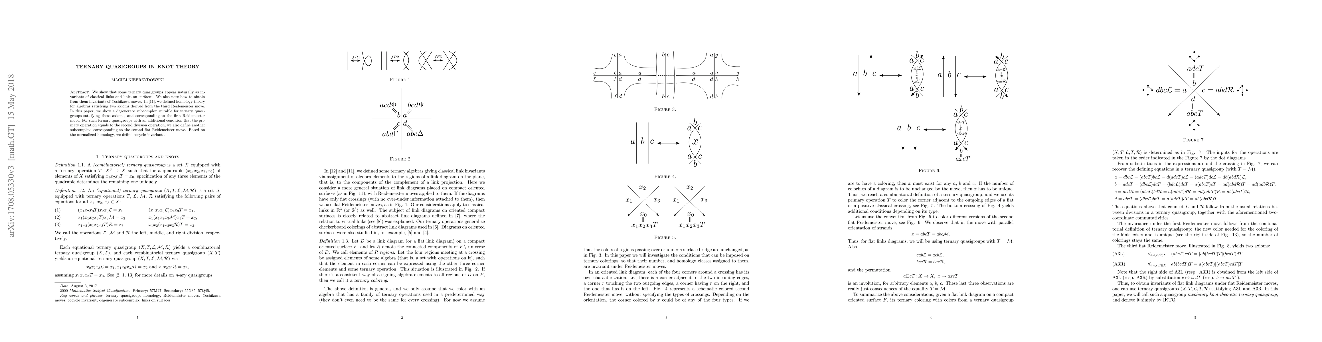 Summary: This paper explores ternary quasigroups as invariants for classical links and surface links, and introduces a homology theory for these quasigroups. It defines subcomplexes corresponding to the first and second Reidemeister moves, and uses normalized homology to derive cocycle invariants for these quasigroups.