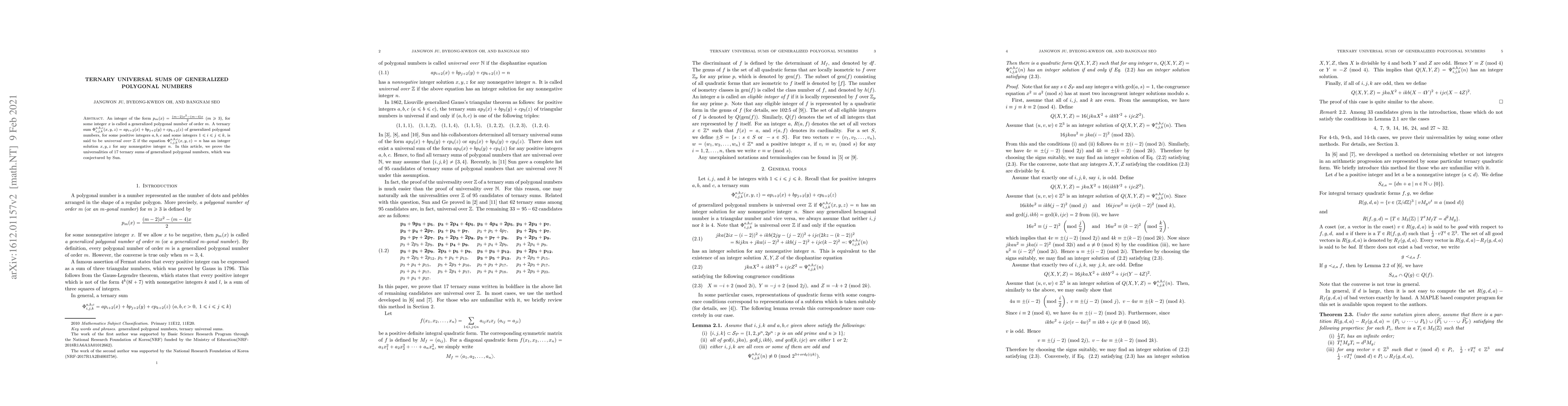 This paper proves the universality of 17 ternary sums of generalized polygonal numbers, confirming a conjecture by Sun. These sums, expressed as combinations of generalized polygonal numbers, can represent any nonnegative integer.