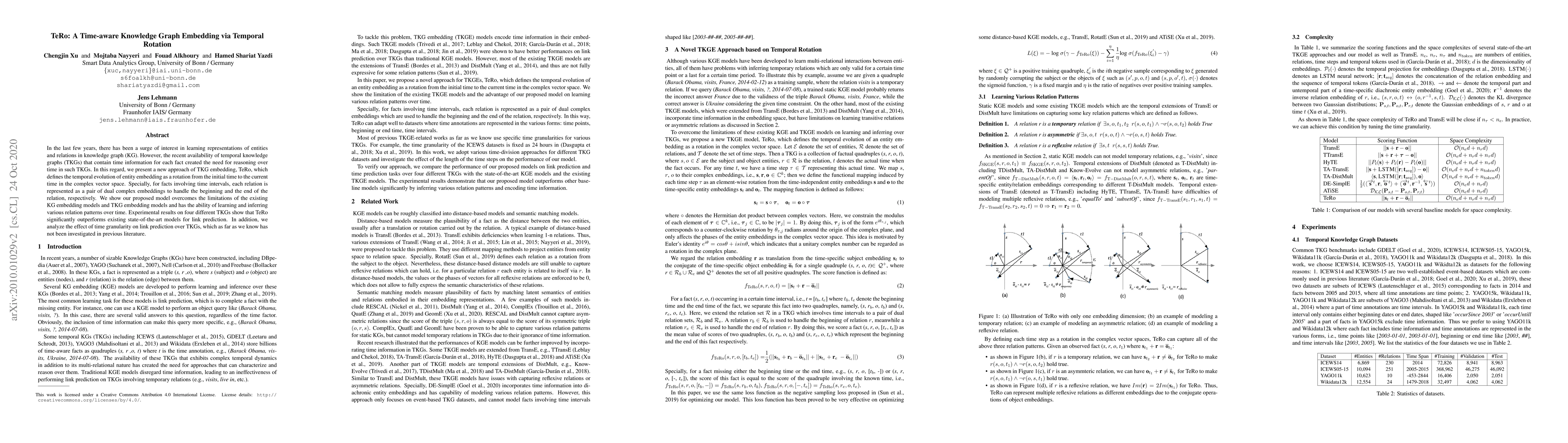 TeRo introduces a novel time-aware knowledge graph embedding method that represents temporal evolution through temporal rotations in complex vector space, significantly outperforming existing models for link prediction in temporal knowledge graphs. The approach also investigates the impact of time granularity on link prediction, a novel contribution to the field.