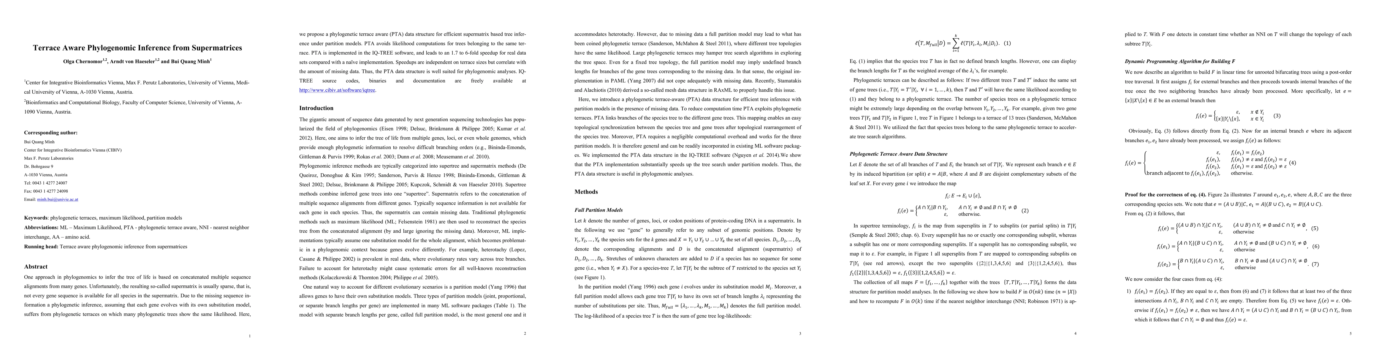 This paper proposes a phylogenetic terrace aware (PTA) data structure to improve phylogenomic inference from supermatrices, addressing the issue of sparse data and terraces in phylogenetic trees. The PTA method implemented in IQ-TREE software provides a speedup of 1.7 to 6 times for real datasets, especially benefiting from higher amounts of missing data.