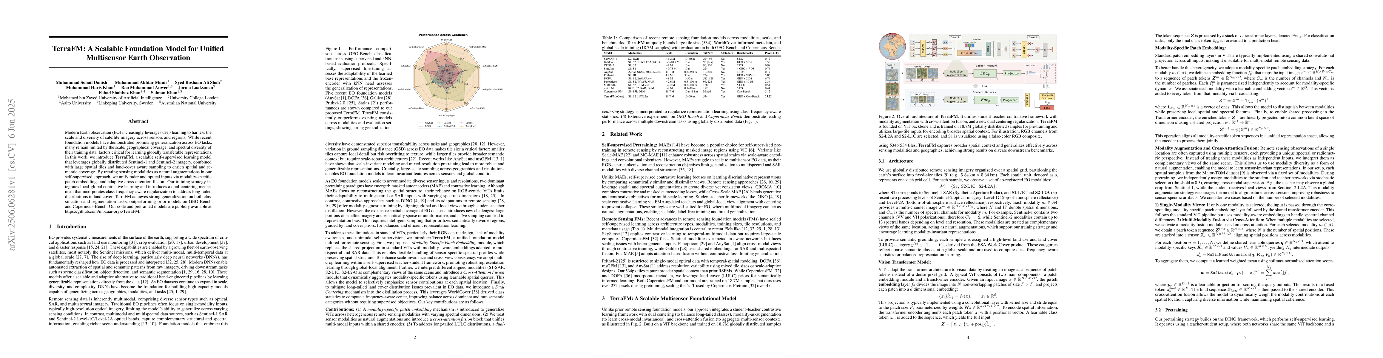 The research introduces TerraFM, a scalable foundation model for unified multisensor Earth observation, leveraging self-supervised learning with globally distributed Sentinel-1 and Sentinel-2 imagery, combined with large spatial tiles and land-cover aware sampling.
