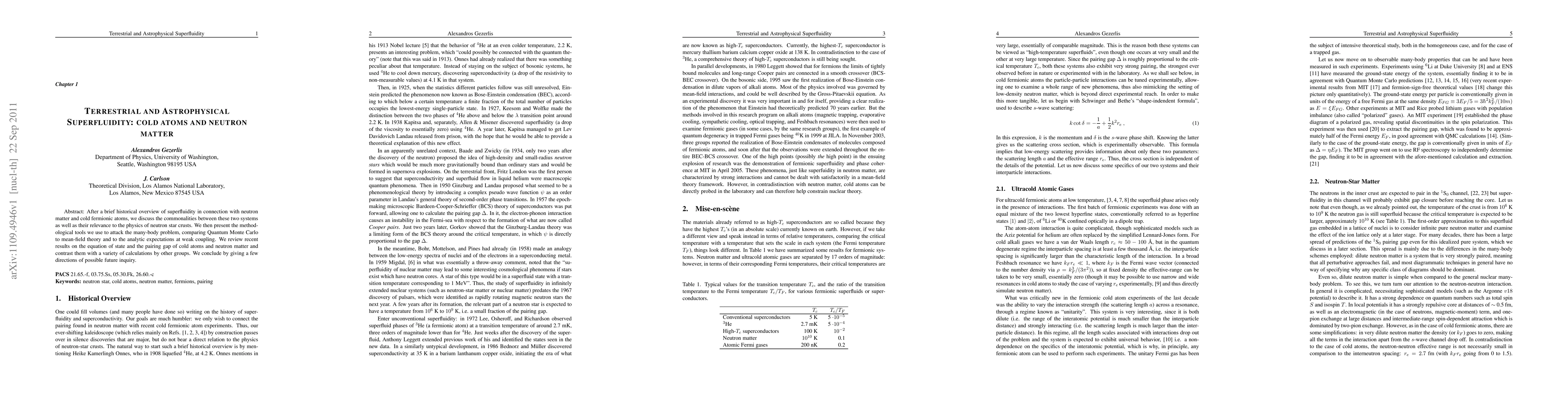 This paper reviews the similarities between terrestrial superfluidity in cold atoms and astrophysical superfluidity in neutron matter, emphasizing their relevance to neutron star crusts. It compares various methodologies, including Quantum Monte Carlo and mean-field theory, to study the many-body problem, and discusses recent findings on the equation of state and pairing gaps, highlighting potential future research directions.