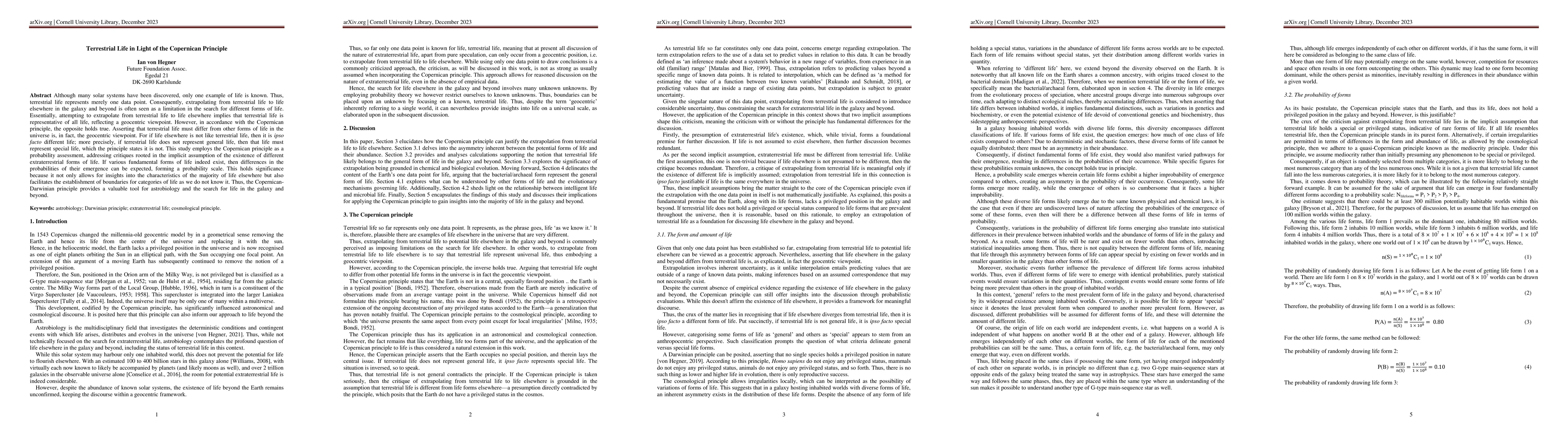 Although many solar systems have been discovered, only one example of life is known. Thus, terrestrial life represents merely one data point. Consequently, extrapolating from terrestrial life to life elsewhere in the galaxy and beyond is often seen as a limitation in the search for different forms of life. Essentially, attempting to extrapolate from terrestrial life to life elsewhere implies that terrestrial life is representative of all life, reflecting a geocentric viewpoint. However, in accordance with the Copernican principle, the opposite holds true. Asserting that terrestrial life must differ from other forms of life in the universe is, in fact, the geocentric viewpoint. For if life elsewhere is not like terrestrial life, then it is ipso facto different life; more precisely, if terrestrial life does not represent general life, then that life must represent special life, which the principle states it is not. This study employs the Copernican principle as a probability assessment, addressing critiques rooted in the implicit assumption of the existence of different extraterrestrial forms of life. If various fundamental forms of life indeed exist, then differences in the probabilities of their emergence can be expected, forming a probability scale. This holds significance because it not only allows for insights into the characteristics of the majority of life elsewhere but also facilitates the establishment of boundaries for categories of life as we do not know it. Thus, the Copernican-Darwinian principle provides a valuable tool for astrobiology and the search for life in the galaxy and beyond.