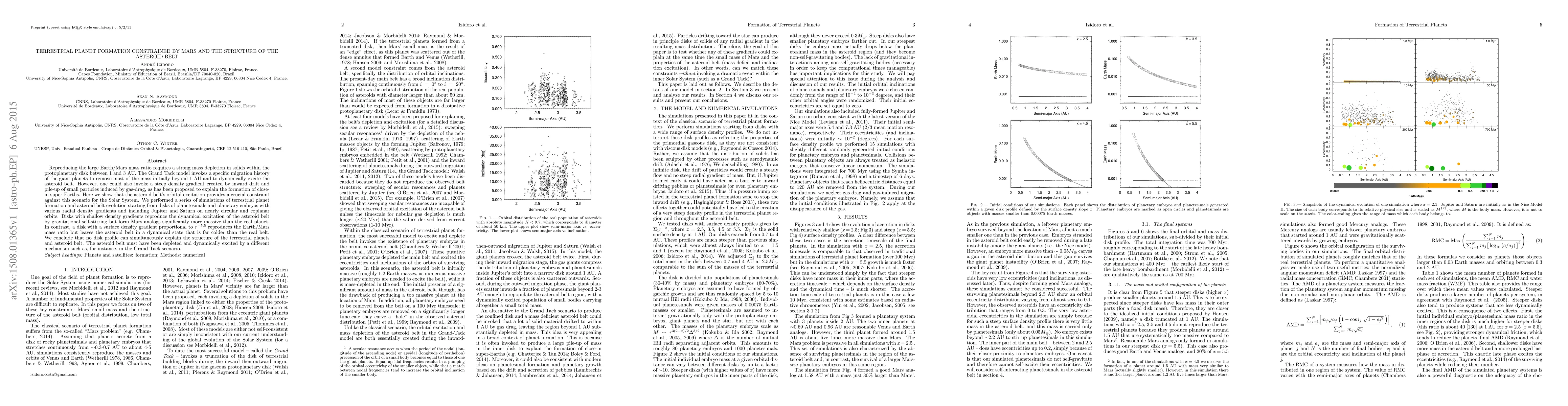 This research investigates the formation of terrestrial planets, particularly Mars, and the structure of the asteroid belt, concluding that no single disk density gradient can explain both the Earth/Mars mass ratio and the asteroid belt's current state. The Grand Tack model, involving giant planet migration, is suggested as a more plausible mechanism for the asteroid belt's excitation.