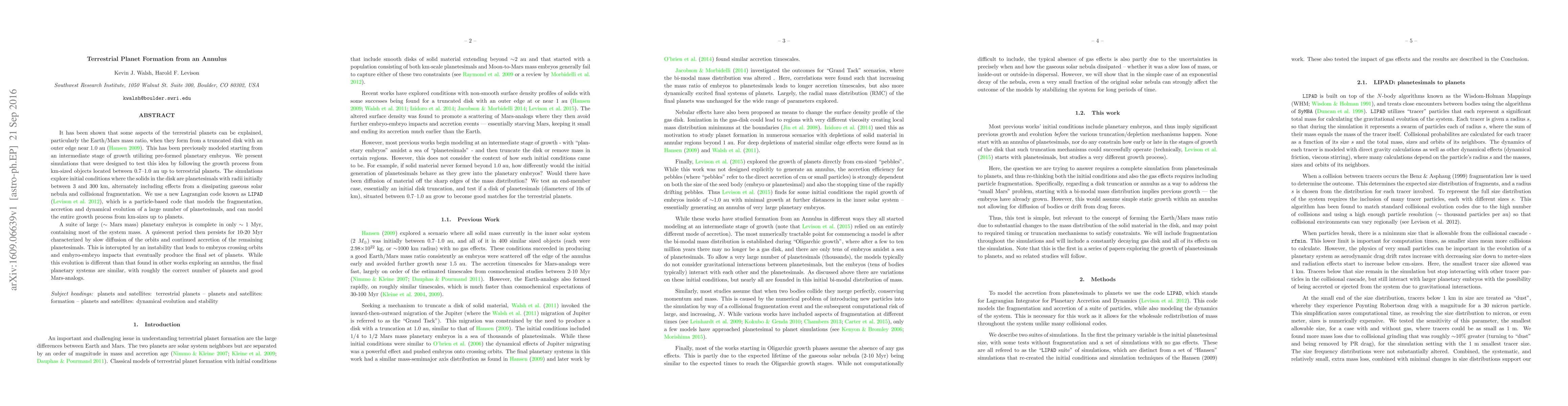 It has been shown that some aspects of the terrestrial planets can be explained, particularly the Earth/Mars mass ratio, when they form from a truncated disk with an outer edge near 1.0 au (Hansen 2009). This has been previously modeled starting from an intermediate stage of growth utilizing pre-formed planetary embryos. We present simulations that were designed to test this idea by following the growth process from km-sized objects located between 0.7 to 1.0 au up to terrestrial planets. The simulations explore initial conditions where the solids in the disk are planetesimals with radii initially between 3 and 300 km, alternately including effects from a dissipating gaseous solar nebula and collisional fragmentation. We use a new Lagrangian code known as LIPAD (Levison et al. 2012), which is a particle-based code that models the fragmentation, accretion and dynamical evolution of a large number of planetesimals, and can model the entire growth process from km-sizes up to planets. A suite of large (Mars mass) planetary embryos is complete in only 1 Myr, containing most of the system mass. A quiescent period then persists for 10-20 Myr characterized by slow diffusion of the orbits and continued accretion of the remaining planetesimals. This is interupted by an instability that leads to embryos crossing orbits and embyro-embryo impacts that eventually produce the final set of planets. While this evolution is different than that found in other works exploring an annulus, the final planetary systems are similar, with roughly the correct number of planets and good Mars-analogs.