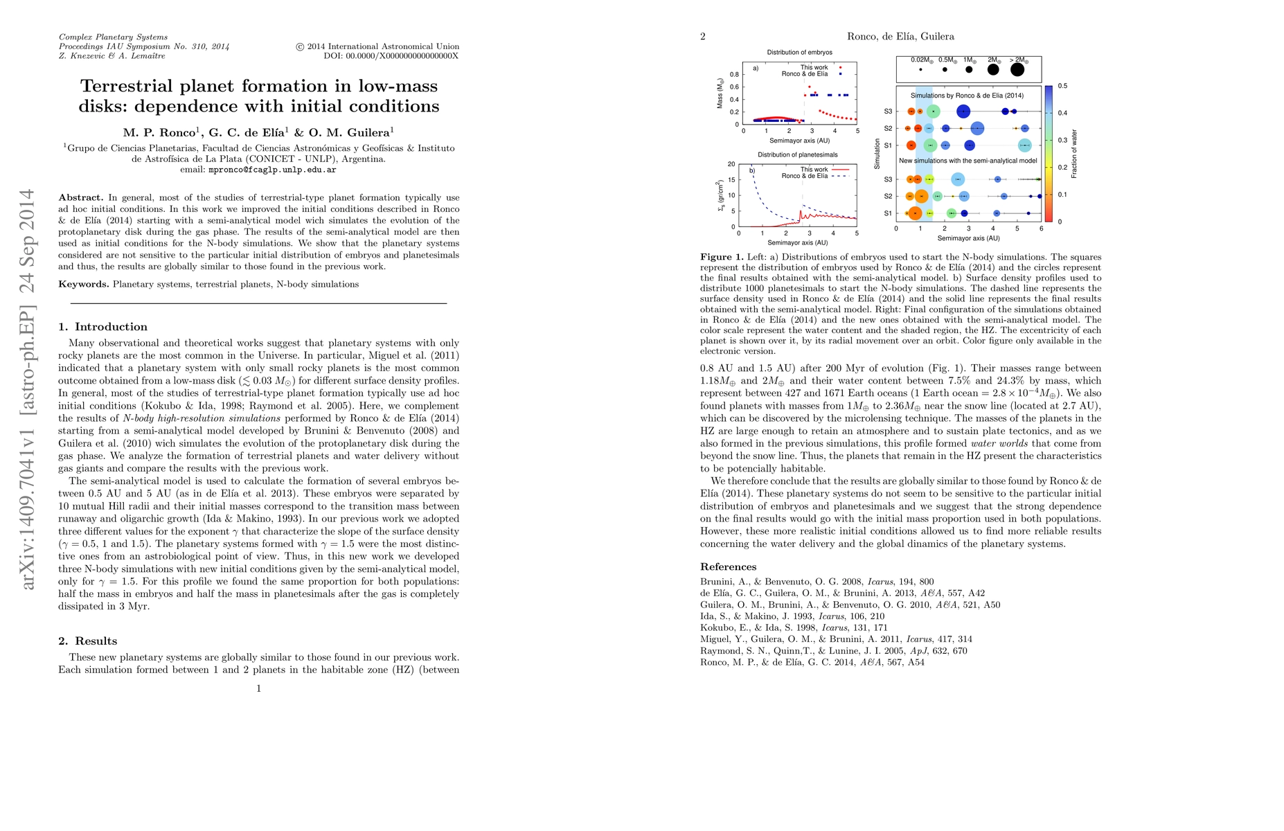 In general, most of the studies of terrestrial-type planet formation typically use ad hoc initial conditions. In this work we improved the initial conditions described in Ronco & de El\'ia (2014) starting with a semi-analytical model wich simulates the evolution of the protoplanetary disk during the gas phase. The results of the semi-analytical model are then used as initial conditions for the N-body simulations. We show that the planetary systems considered are not sensitive to the particular initial distribution of embryos and planetesimals and thus, the results are globally similar to those found in the previous work.
