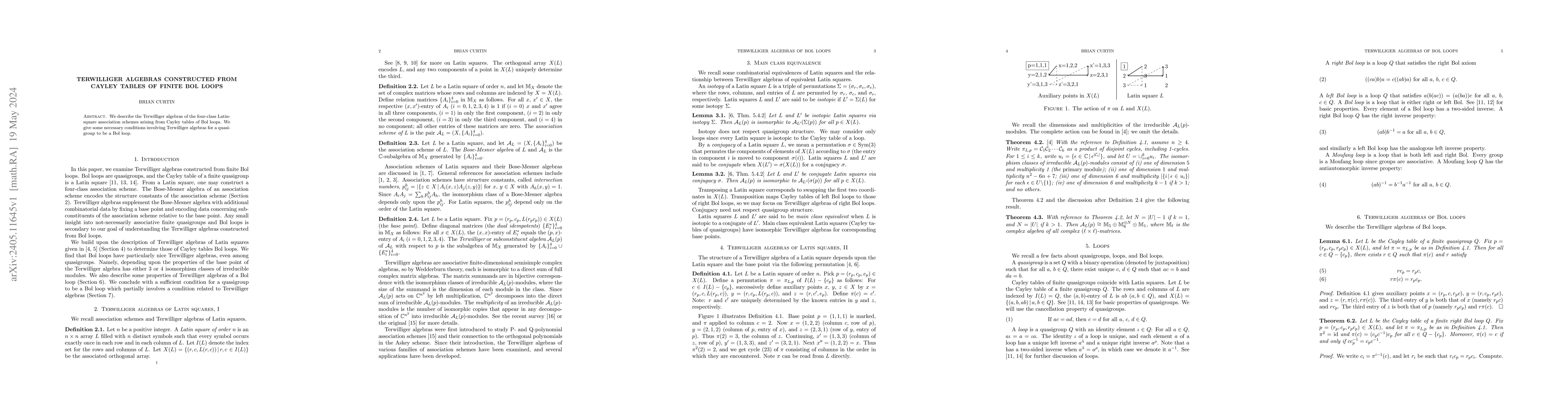 The paper investigates the Terwilliger algebras associated with Latin-square association schemes derived from Cayley tables of finite Bol loops, and provides conditions linking these algebras to the quasigroup structure of Bol loops.