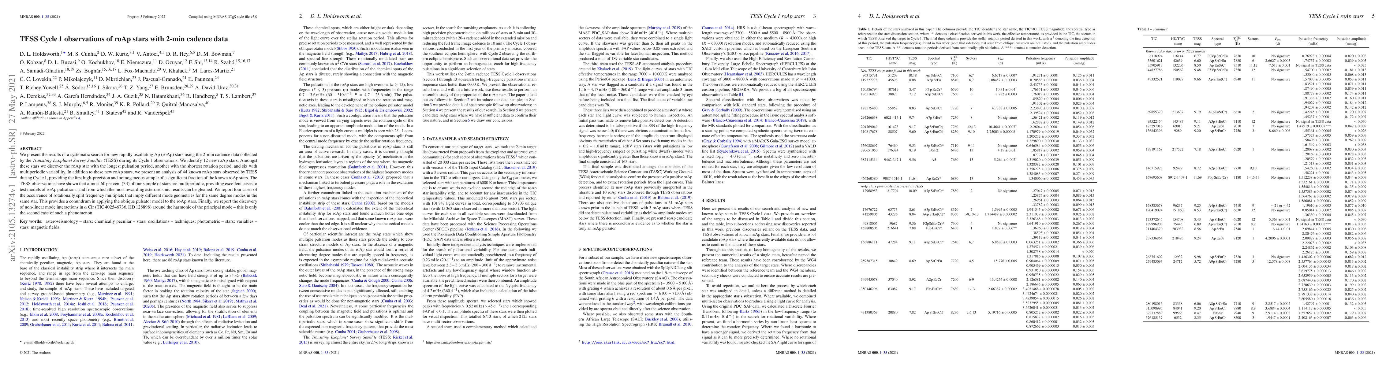 The TESS Cycle 1 observations identified 12 new rapidly oscillating Ap (roAp) stars, including the longest pulsation period and shortest rotation period roAp stars, and six with multiperiodic variability. The study also analyzed 44 known roAp stars, revealing nearly 60% are multiperiodic, providing valuable data for asteroseismic studies and challenging the oblique pulsator model.