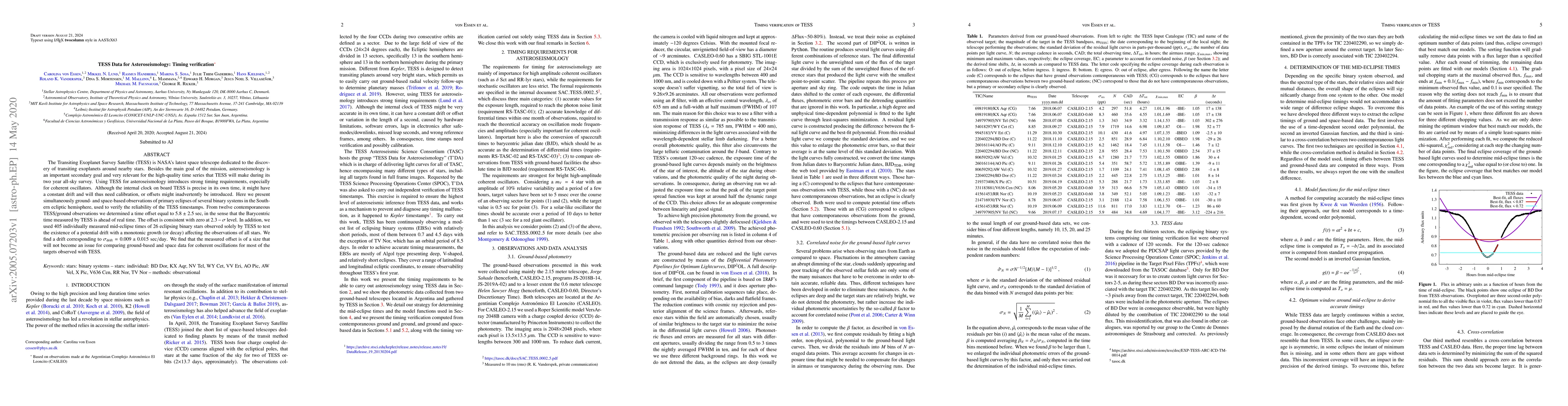 This paper verifies the timing reliability of TESS data for asteroseismology through simultaneous ground- and space-based observations of binary systems. It finds a small time offset of 5.8 +/- 2.5 sec and a negligible drift of 0.009 +/- 0.015 sec/day, indicating that TESS timestamps are sufficiently accurate for asteroseismology.