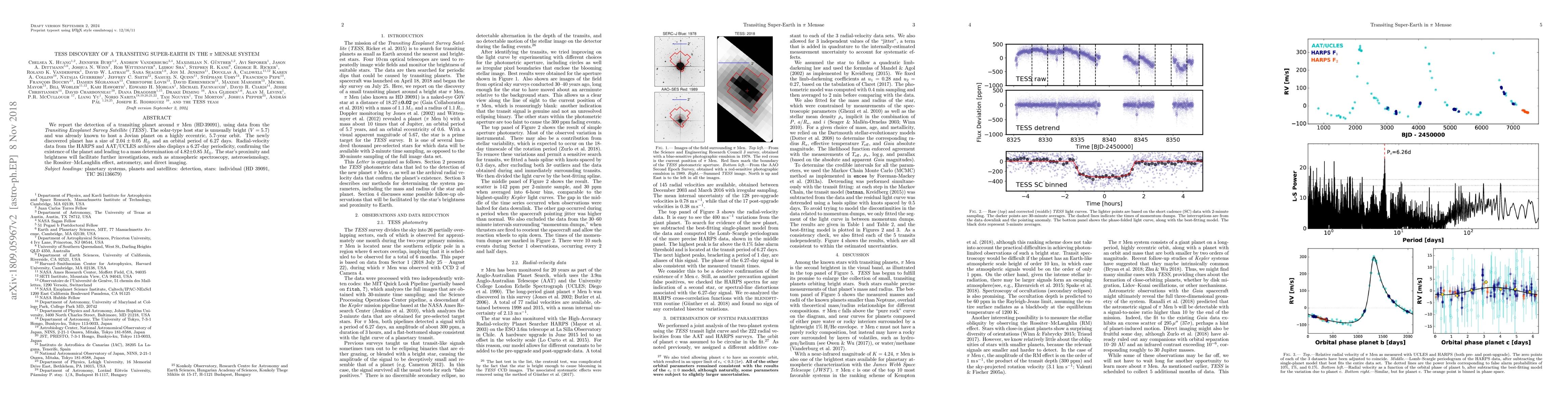 We report the detection of a transiting planet around $\pi$ Mensae (HD 39091), using data from the Transiting Exoplanet Survey Satellite (TESS). The solar-type host star is unusually bright (V=5.7) and was already known to host a Jovian planet on a highly eccentric, 5.7-year orbit. The newly discovered planet has a size of $2.04\pm 0.05$ $R_\oplus$ and an orbital period of 6.27 days. Radial-velocity data from the HARPS and AAT/UCLES archives also displays a 6.27-day periodicity, confirming the existence of the planet and leading to a mass determination of $4.82\pm 0.85$ $M_\oplus$. The star's proximity and brightness will facilitate further investigations, such as atmospheric spectroscopy, asteroseismology, the Rossiter--McLaughlin effect, astrometry, and direct imaging.