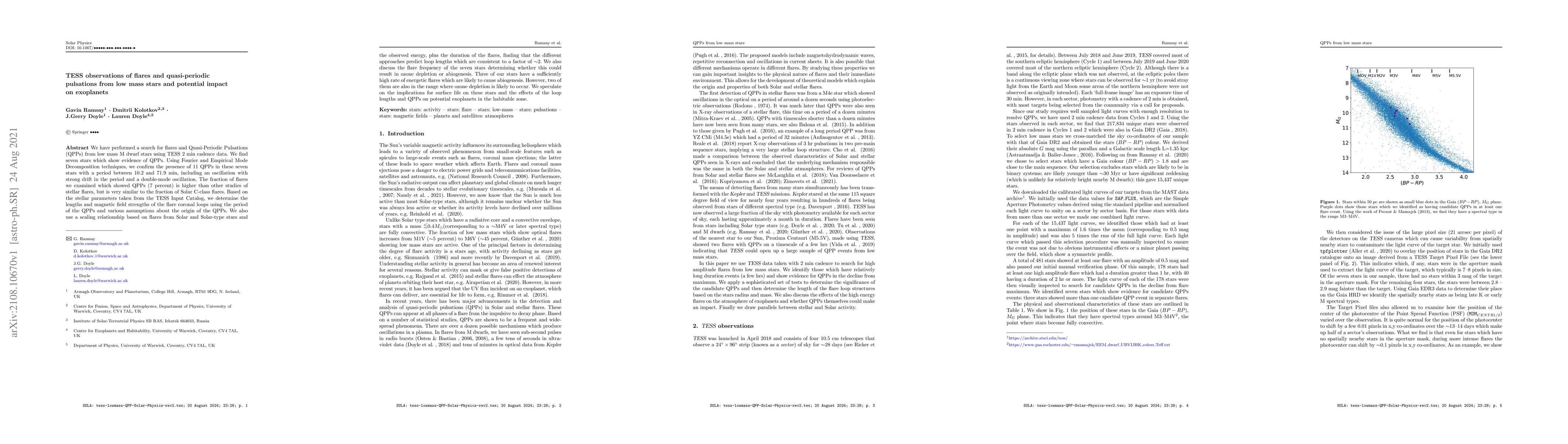 Researchers analyzed TESS data to detect flares and quasi-periodic pulsations from low-mass stars, finding 7 stars with QPPs and predicting loop lengths consistent across different approaches, which could impact exoplanet habitability.