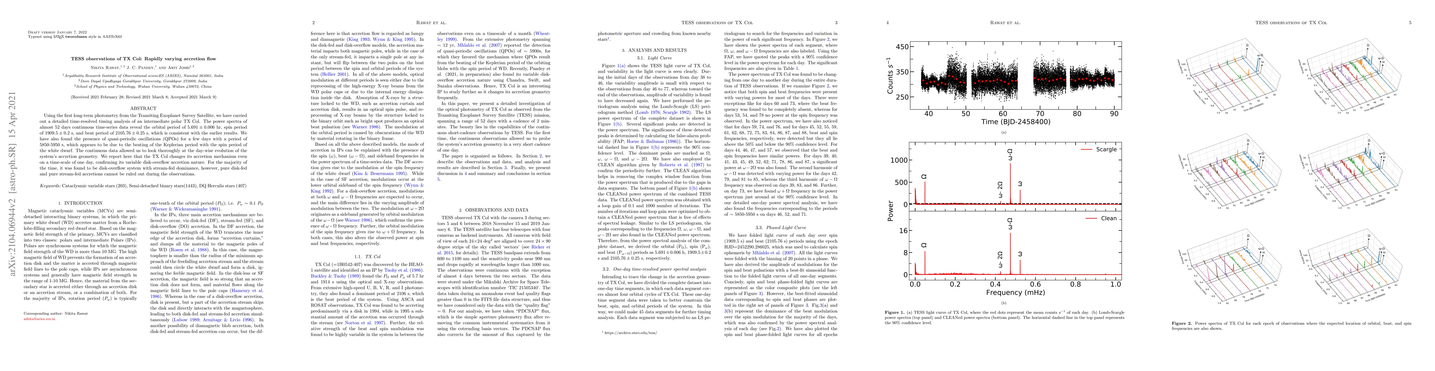 The TESS observations of TX Col reveal a rapidly varying accretion flow with changes in its mechanism on a daily basis, confirming its variable disk-overflow accretion nature.