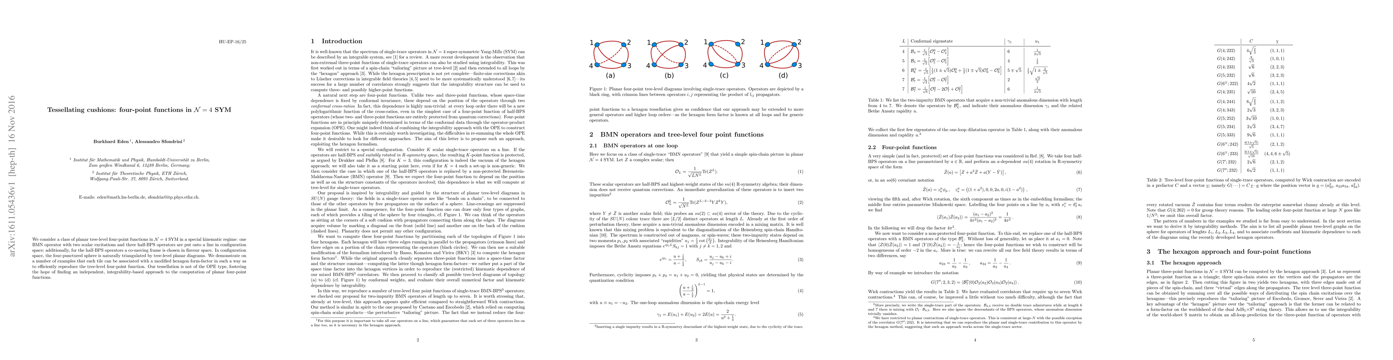 This paper explores planar tree-level four-point functions in N=4 SYM theory under a specific kinematic regime, demonstrating a tessellation of the four-punctured sphere by tree-level diagrams. Each tessellation tile corresponds to a modified hexagon form-factor, suggesting a potential integrability-based method for computing these functions.